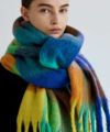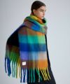 ボリュームフリンジブロックチェックマフラー*ブルー系マルチ*<NMA-G04>