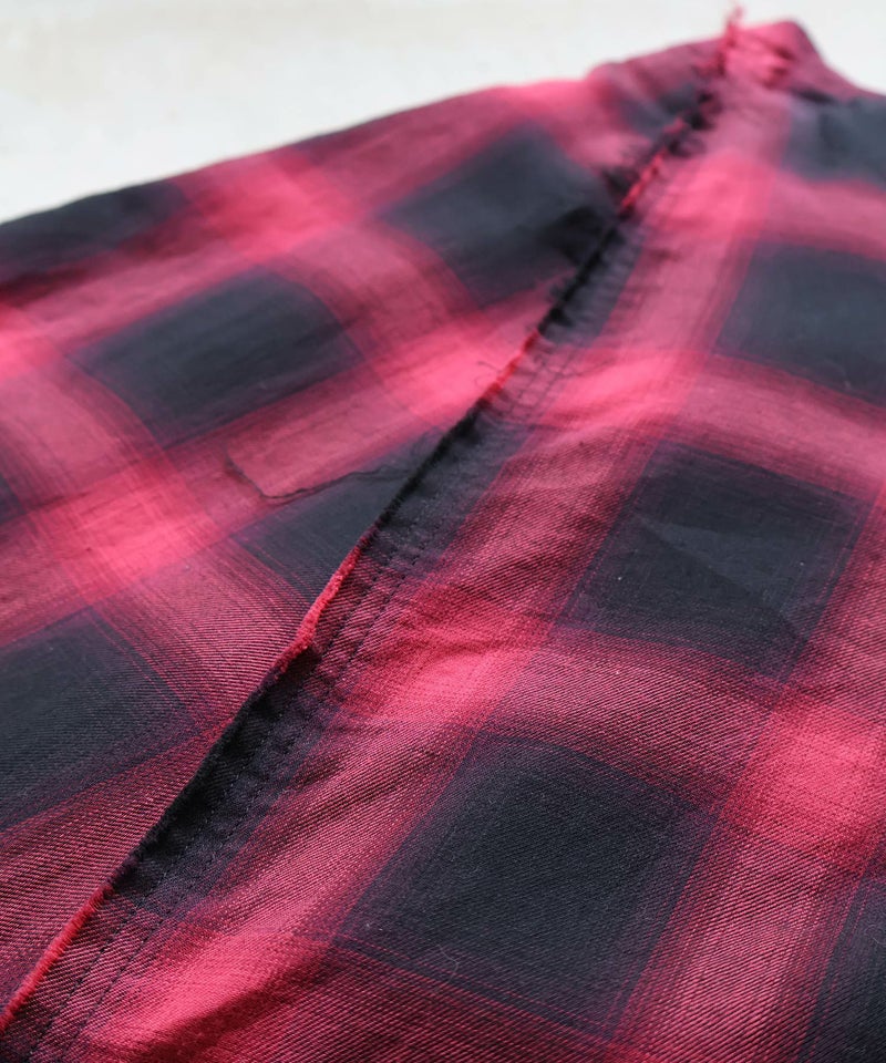 バイアスに切替え、切りっぱなし仕様にし、洗い加工で仕上げたヴィンテージ感のある仕立てがポイント。