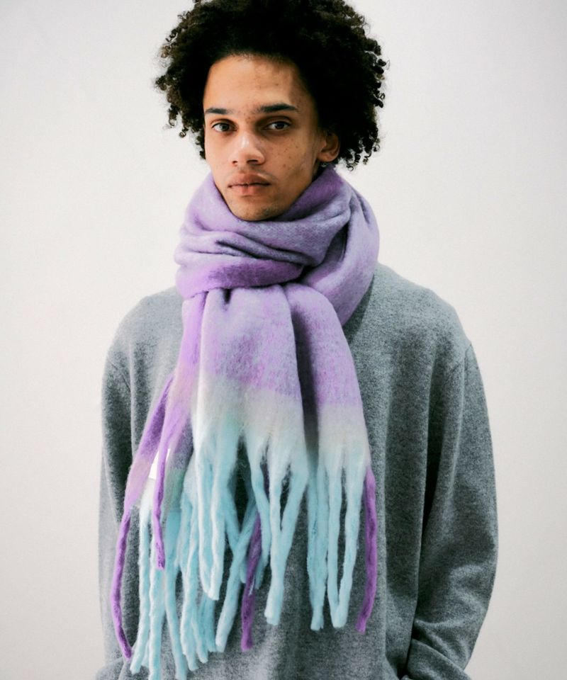 【MEN】ポイントカラーボリュームフリンジマフラー*パープル*<NMA-G36>