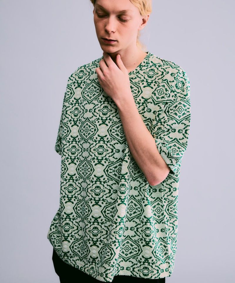 アラベスク模様の総柄でソフトで滑らかな肌触りの生地を使用したオーバーサイズのプルオーバー。
