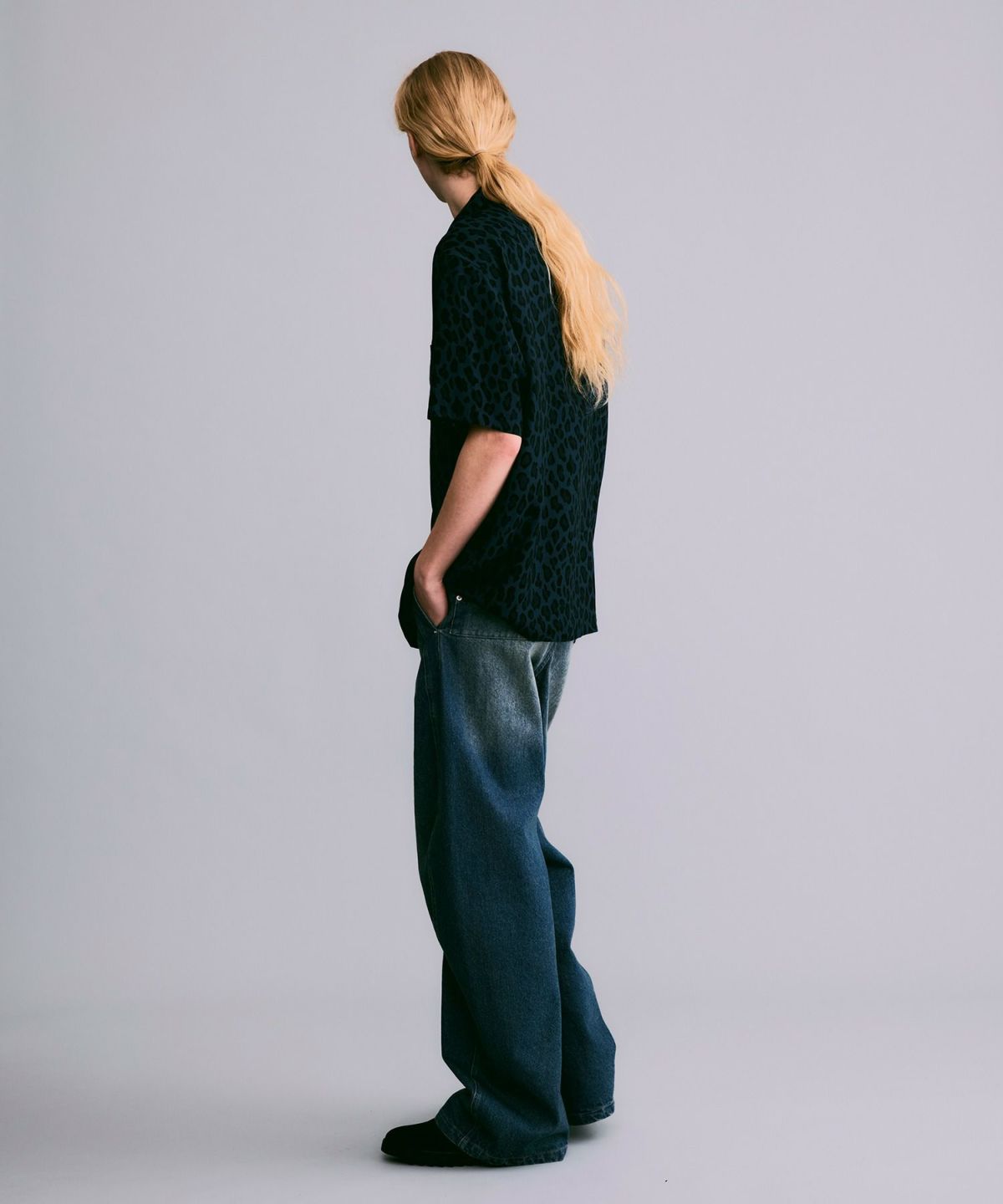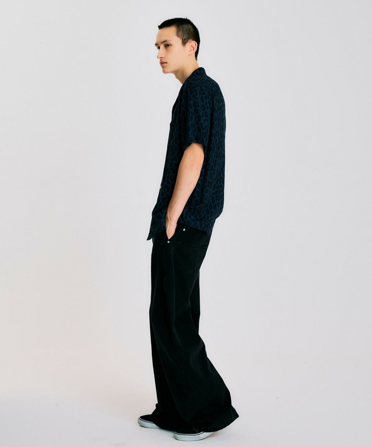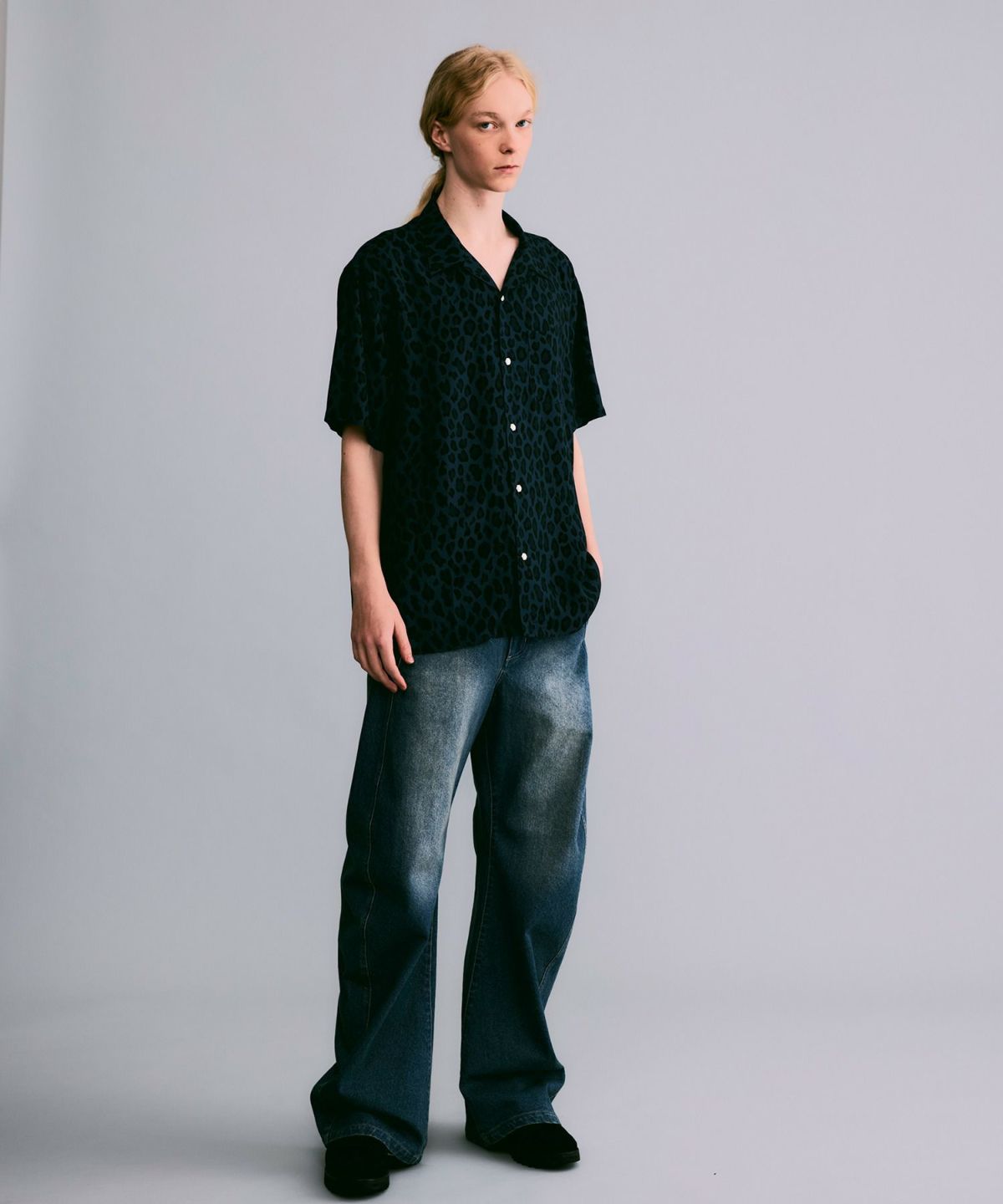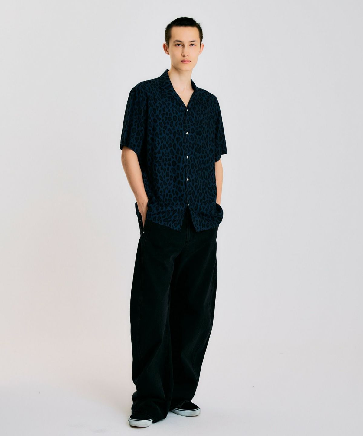 レオパード柄オープンカラーシャツ*ブルー*<NMS2-MBL17>