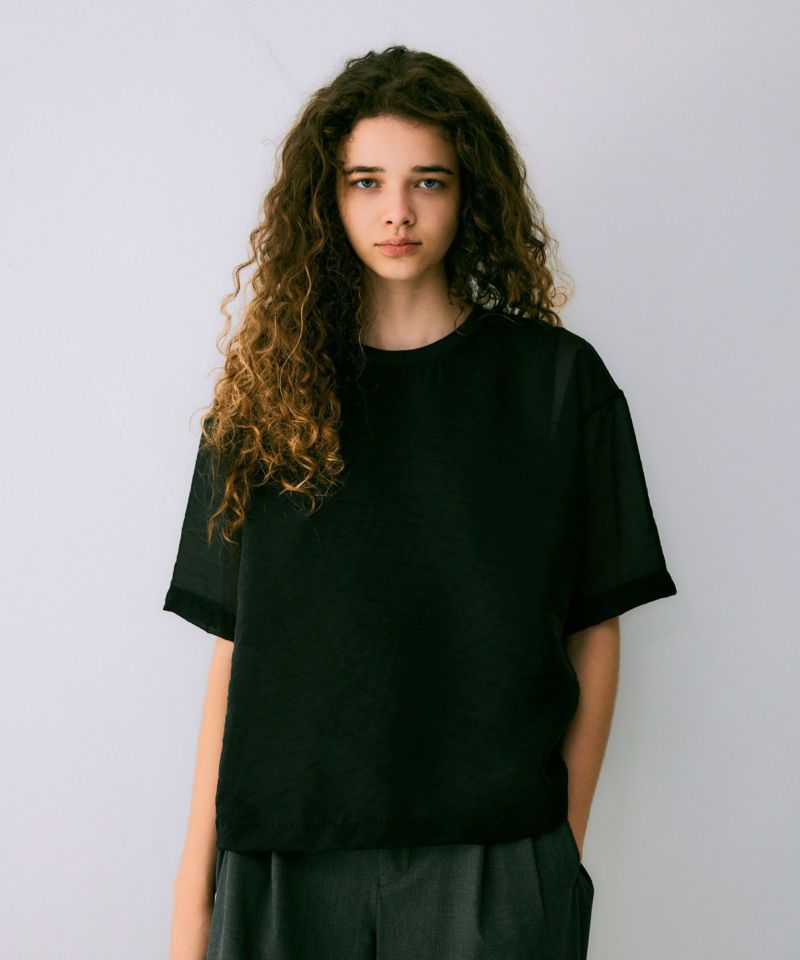 【Made in Japan】 シャンブルオーガンジーレイヤードTEE*ブラック*<NMA3-LT71>