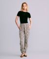 ジョガーパンツでは珍しいアラベスク模様の総柄でソフトで滑らかな肌触りの生地を使用しています。