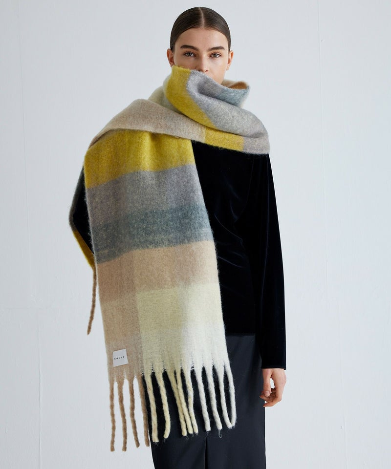 【追加③】ボリュームフリンジブロックチェックマフラー*ベージュチェック*<NMA-G04>