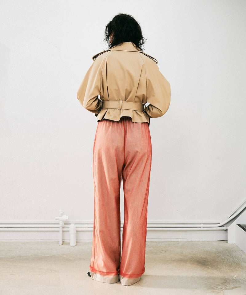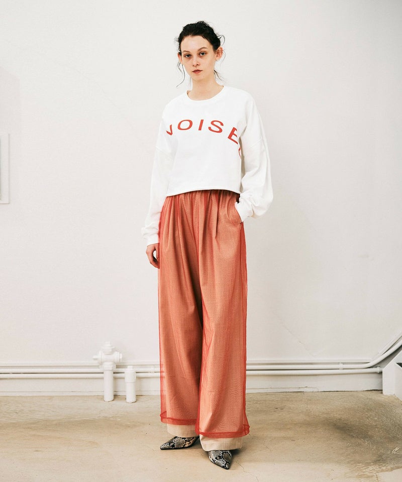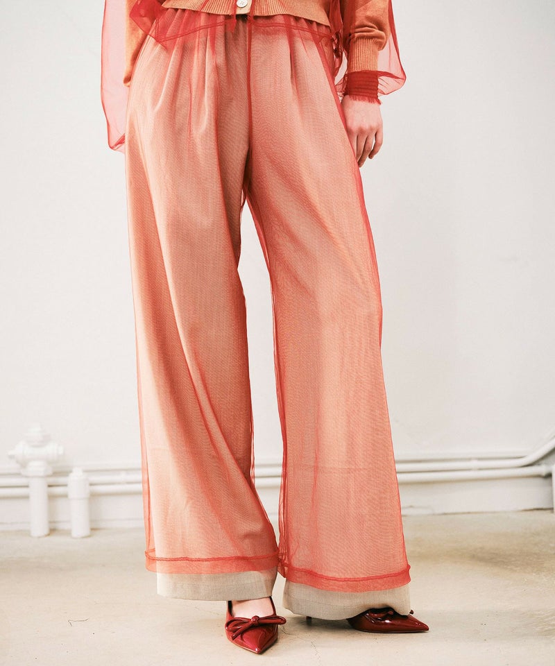 【Made in Japan】 チュールレイヤードワイドパンツ*ベージュ×レッド*<NMS1-LP103>[3月中旬お届け予定]
