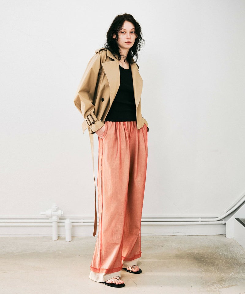 透け感が生むレイヤーのコントラストが、静かな違和感とモードな空気を演出。