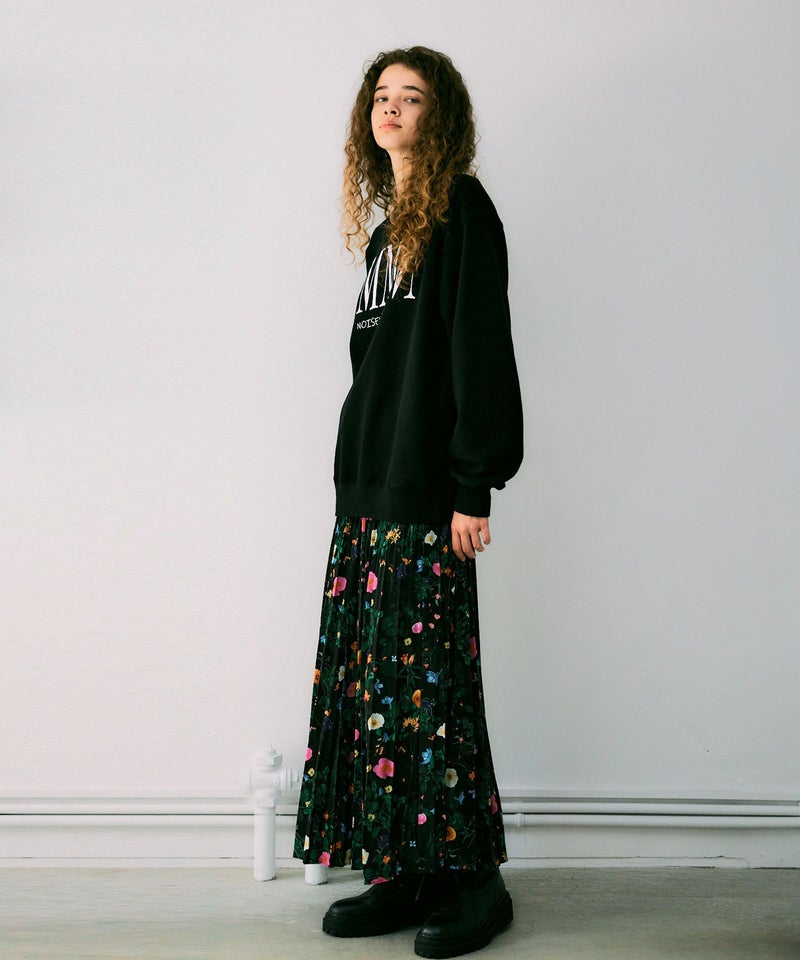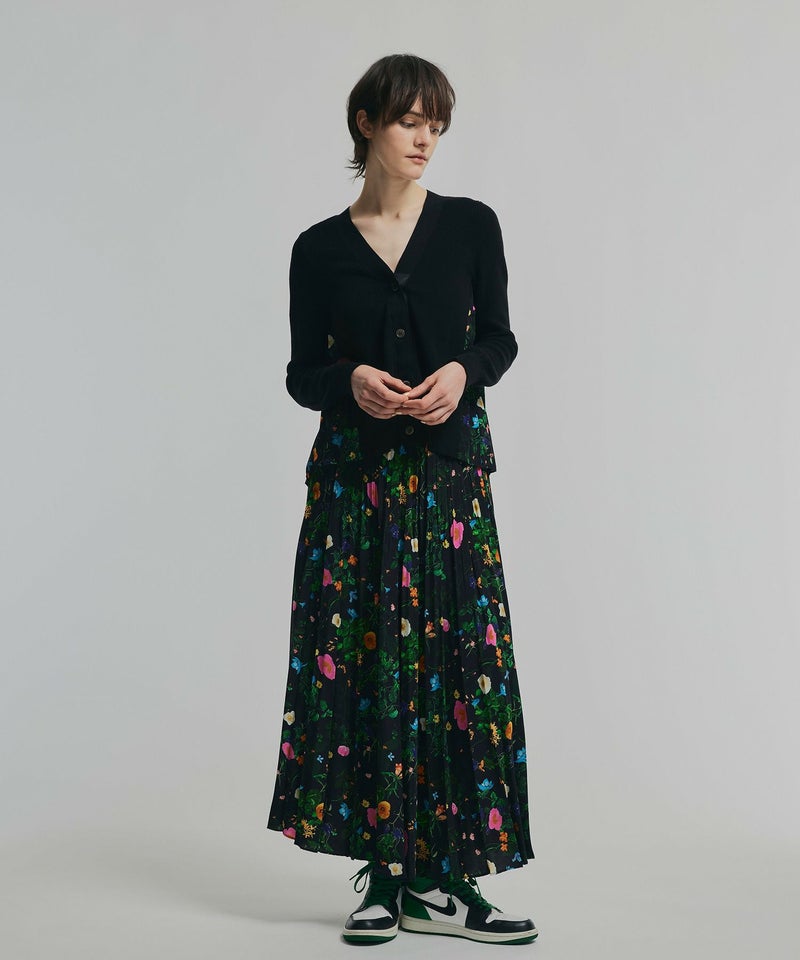 【Made in Japan】 ボタニカル柄プリーツロングスカート*ブラック*<NMS1-LS34>