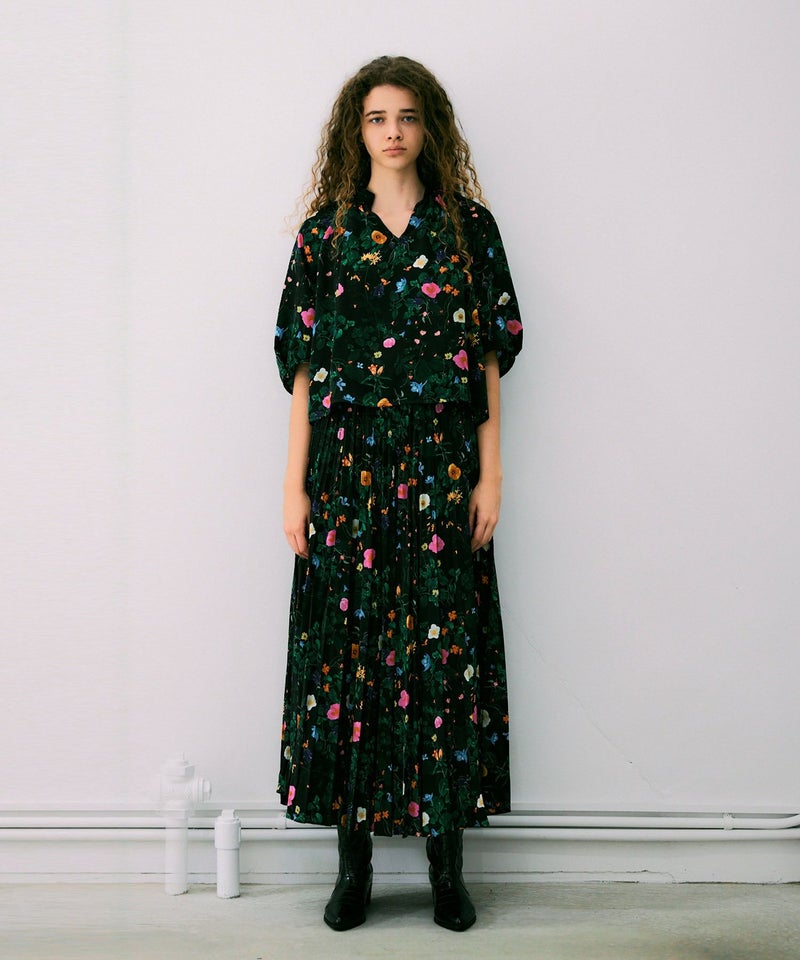 NOISEMAKERオリジナルの鮮やかなボタニカル柄の生地は、サラリとした肌触りで1年を通して着まわしていただける素材感です。