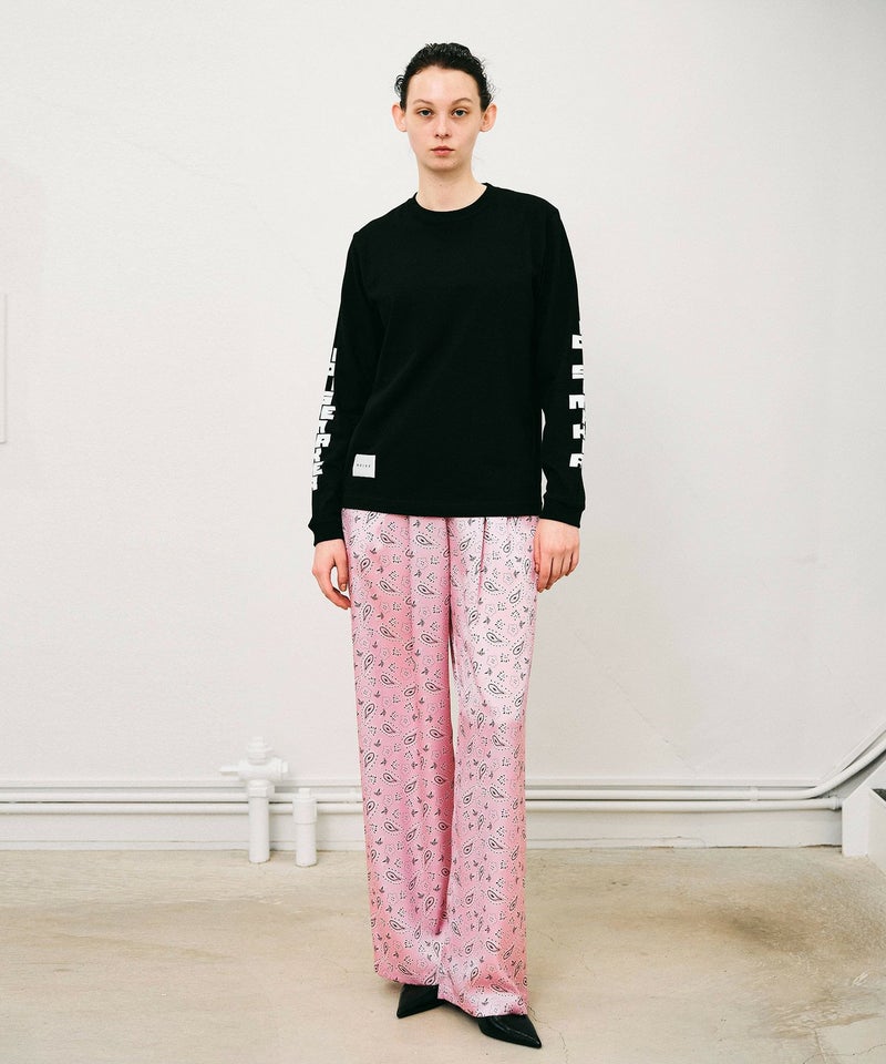 両袖に大胆に配した縦ロゴが印象的なロングスリーブTシャツ。