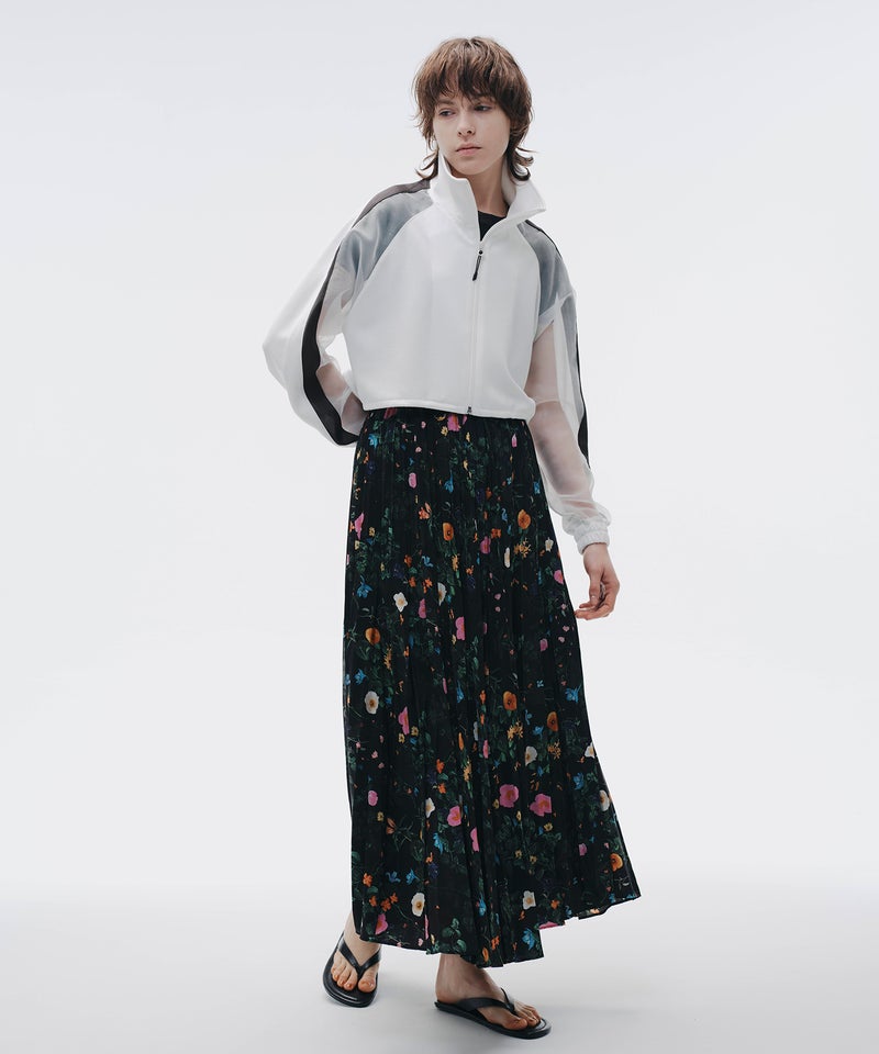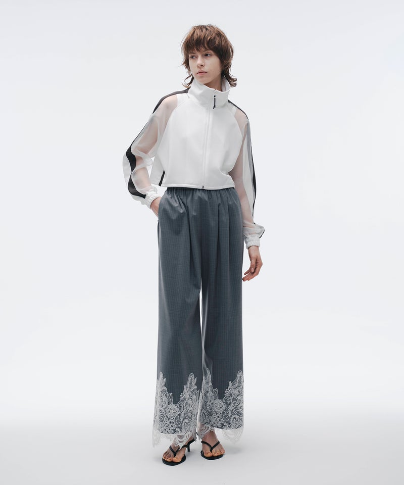 スポーティなトラックジャケットを、シアー素材でモードに昇華した一着。