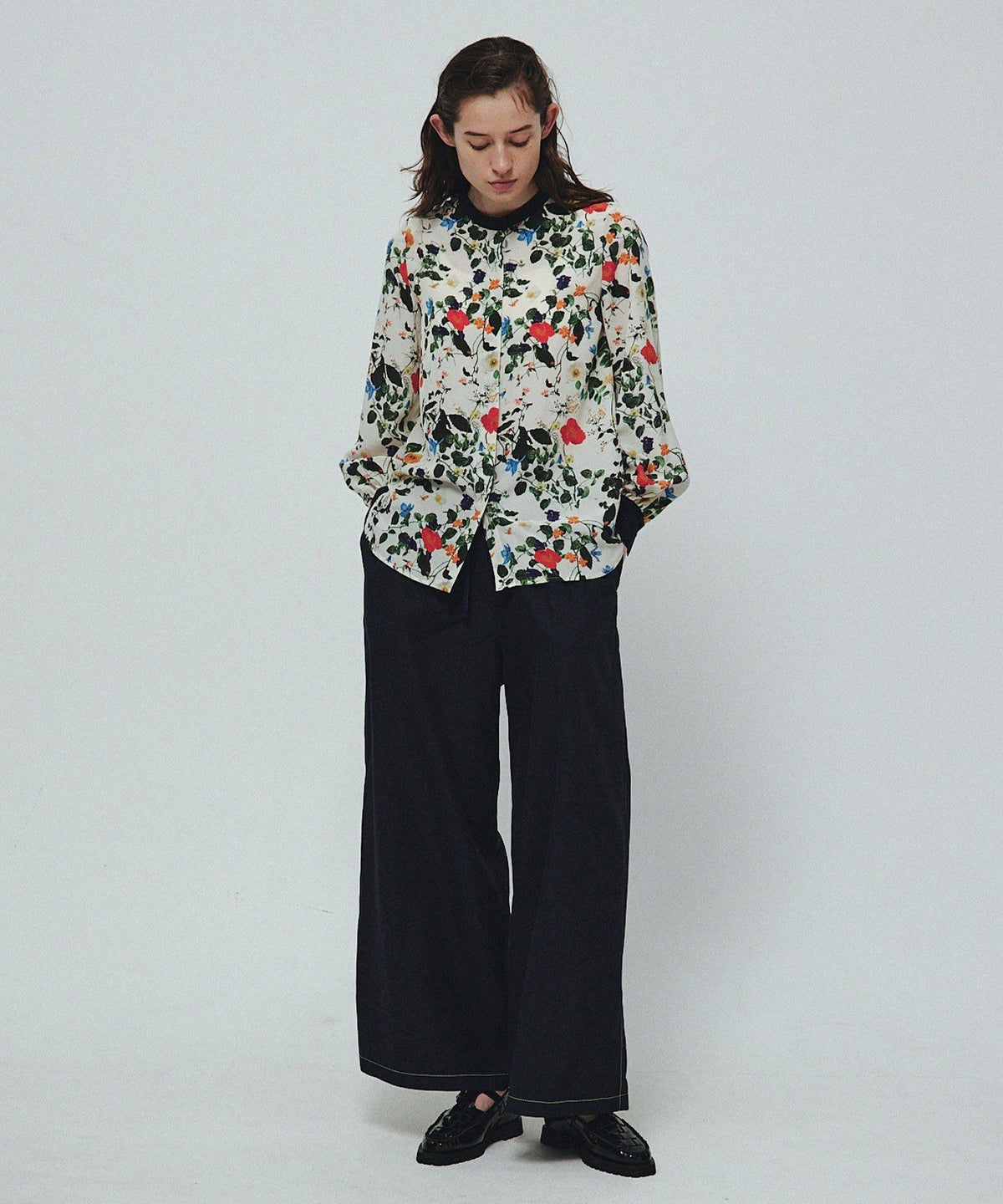 【追加④】バンドカラーボタニカルブラウス【手洗い可能】*オフホワイト*<NMS2-LBL11>