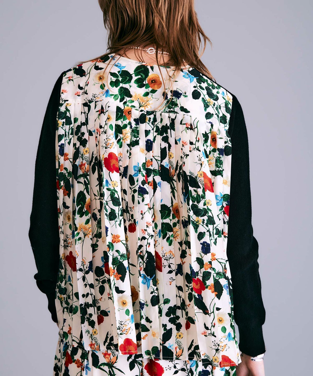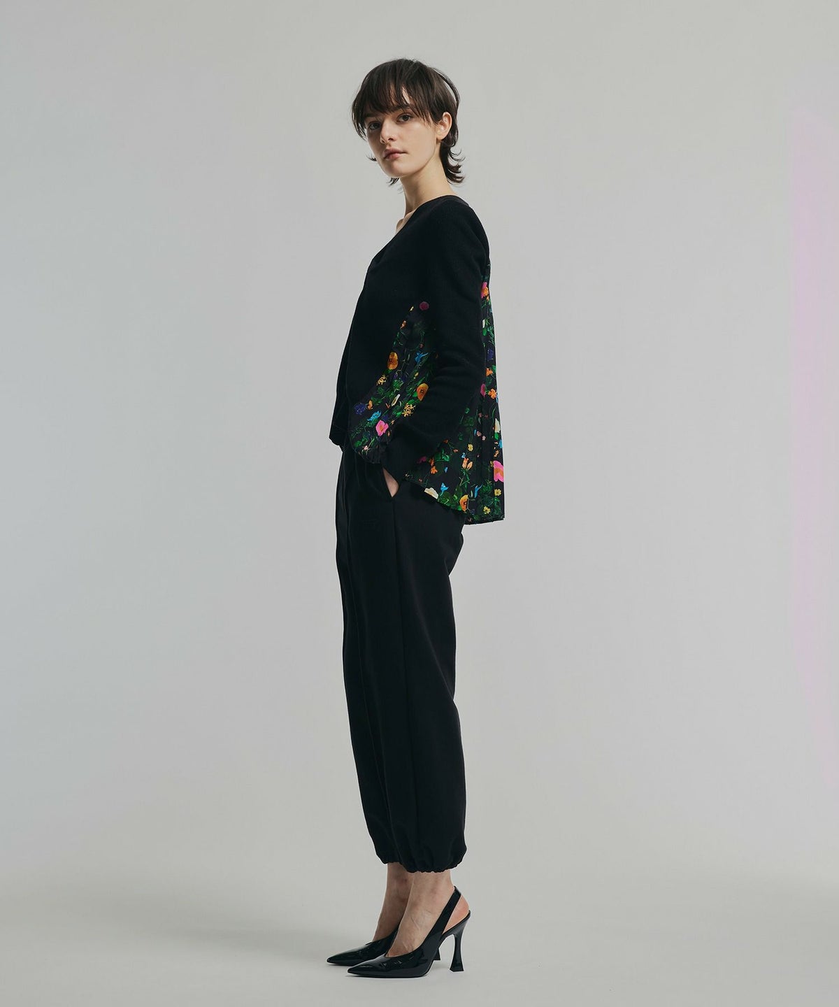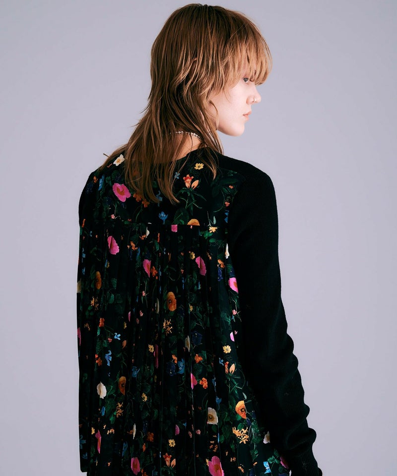 【追加】ボタニカル柄切替カーディガン*ブラック*<NMS1-LN13>