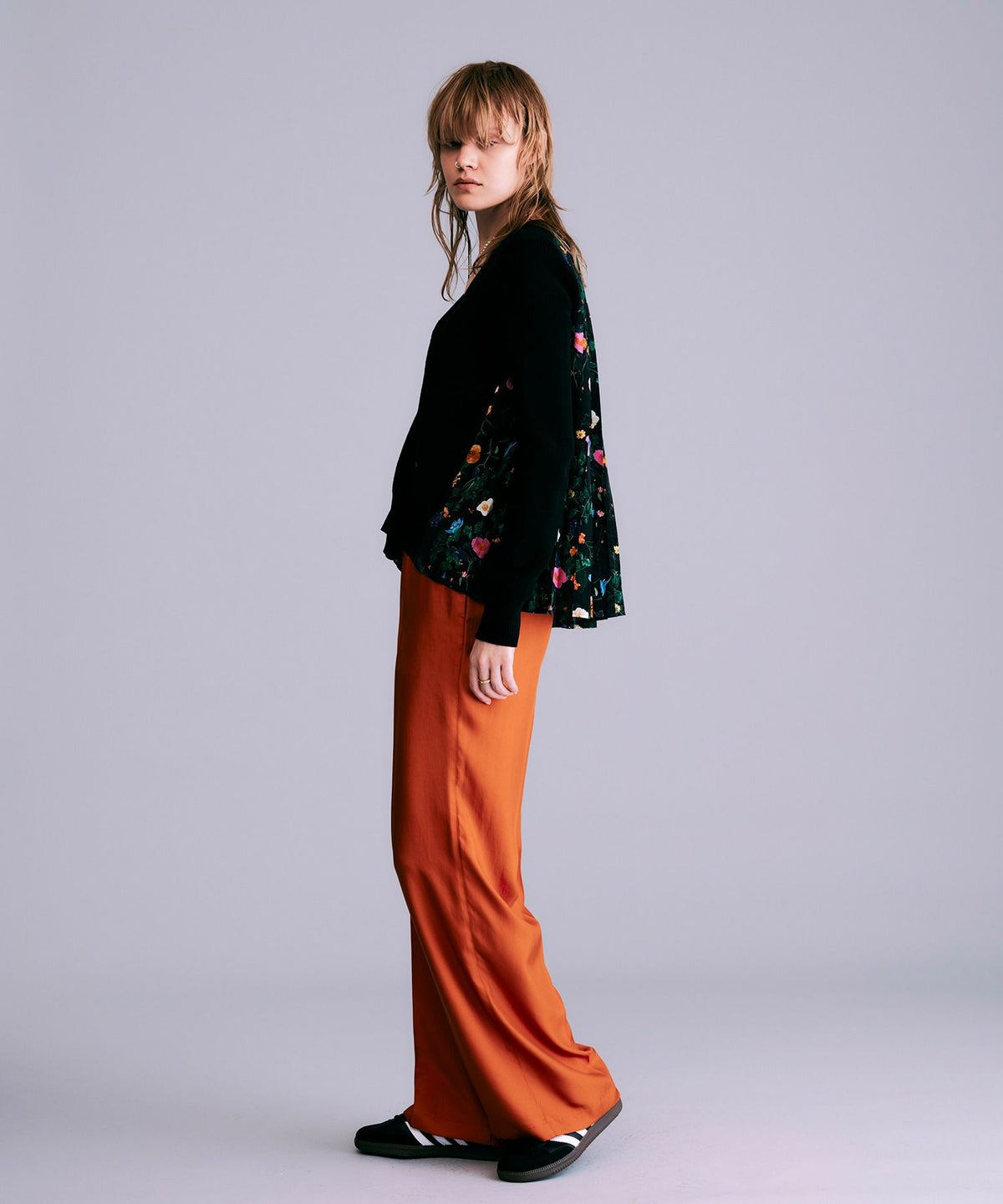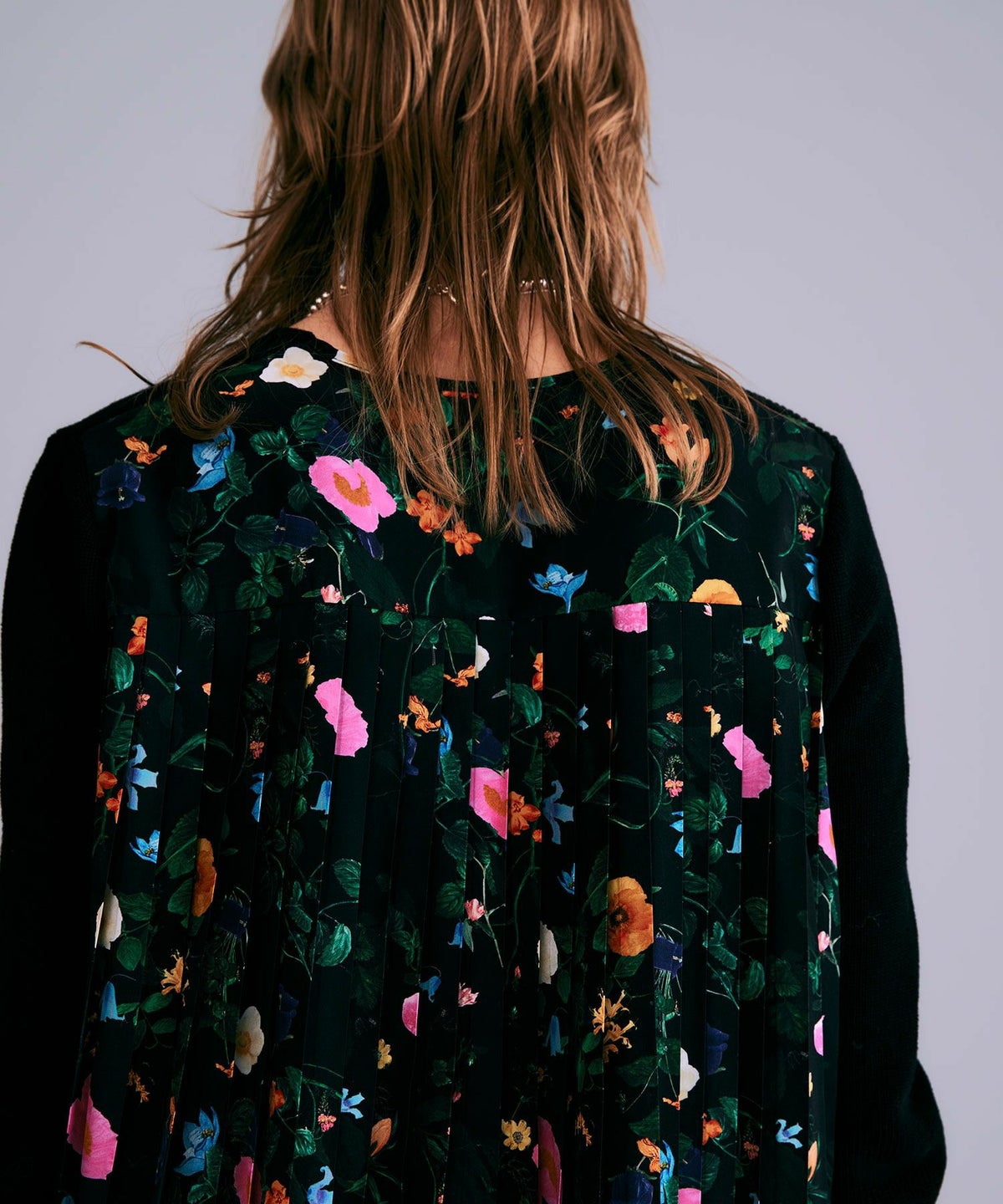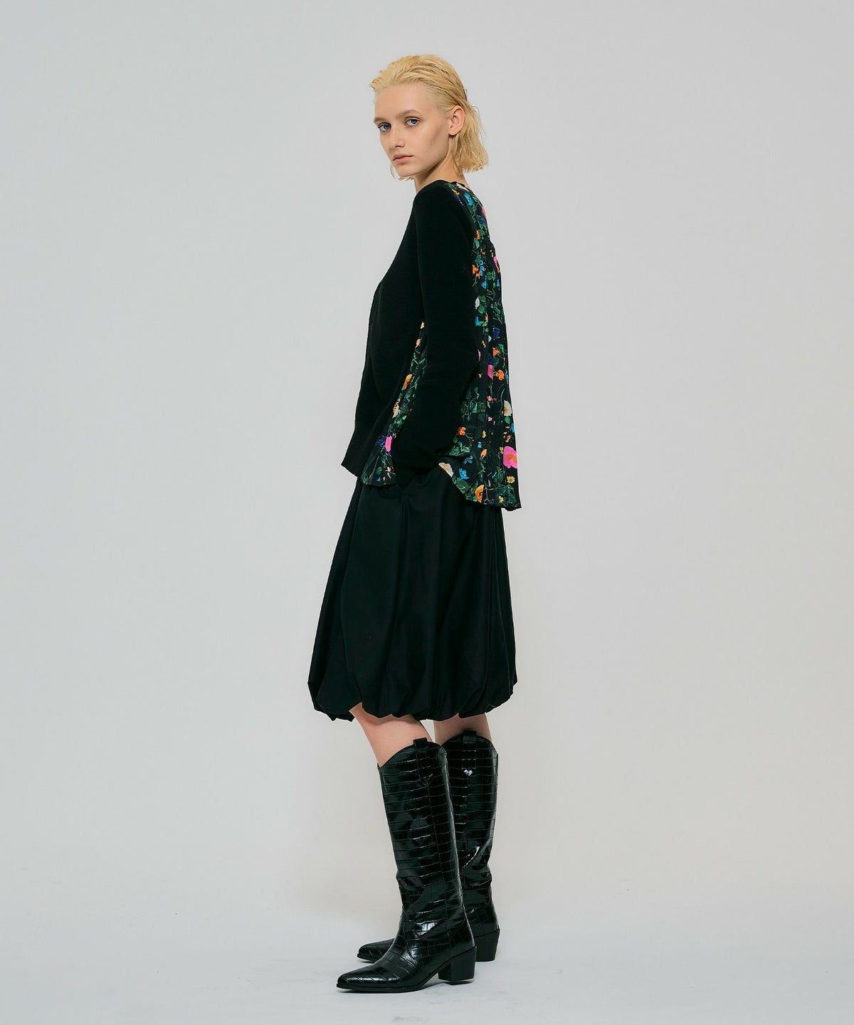 【追加】ボタニカル柄切替カーディガン*ブラック*<NMS1-LN13>