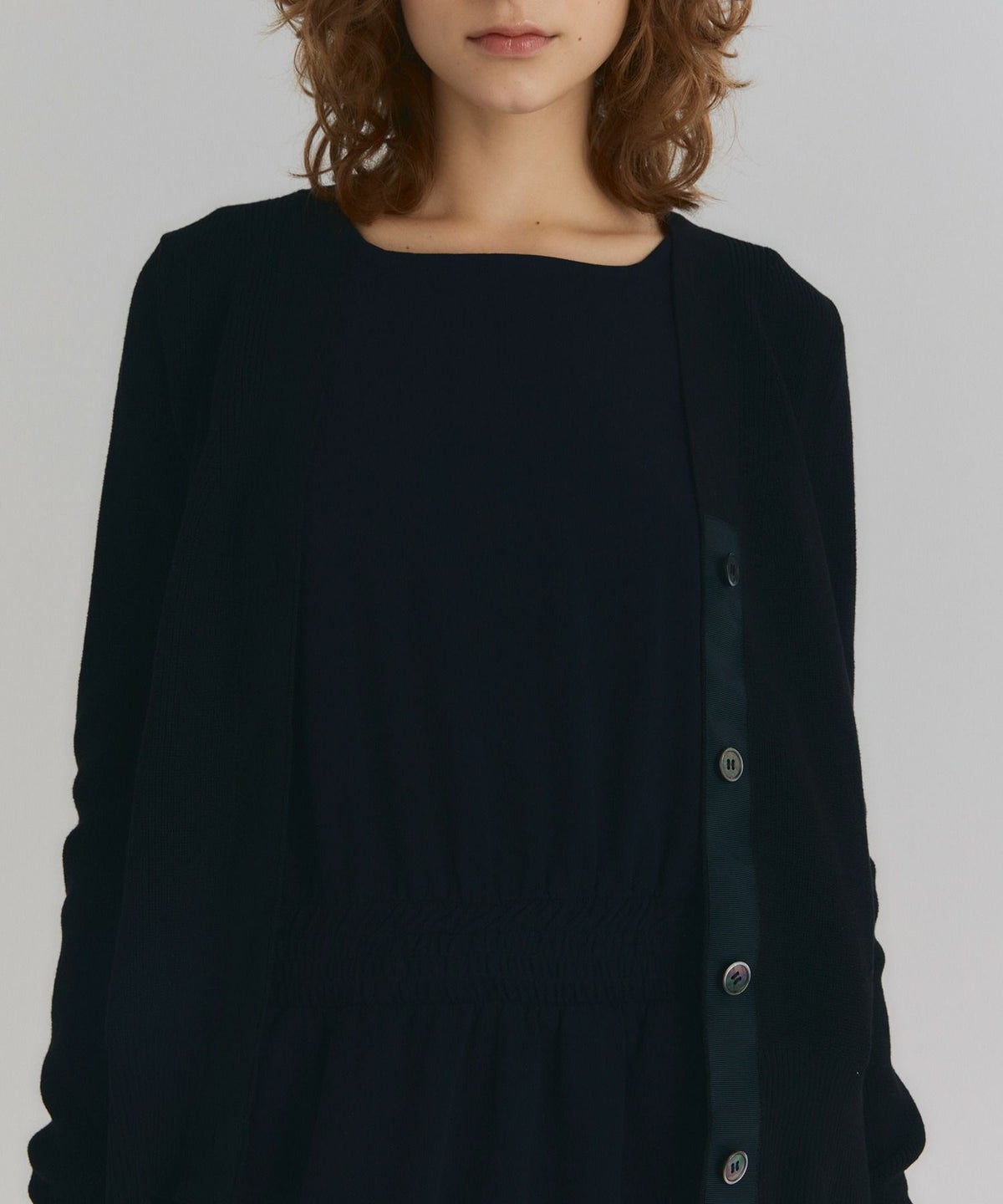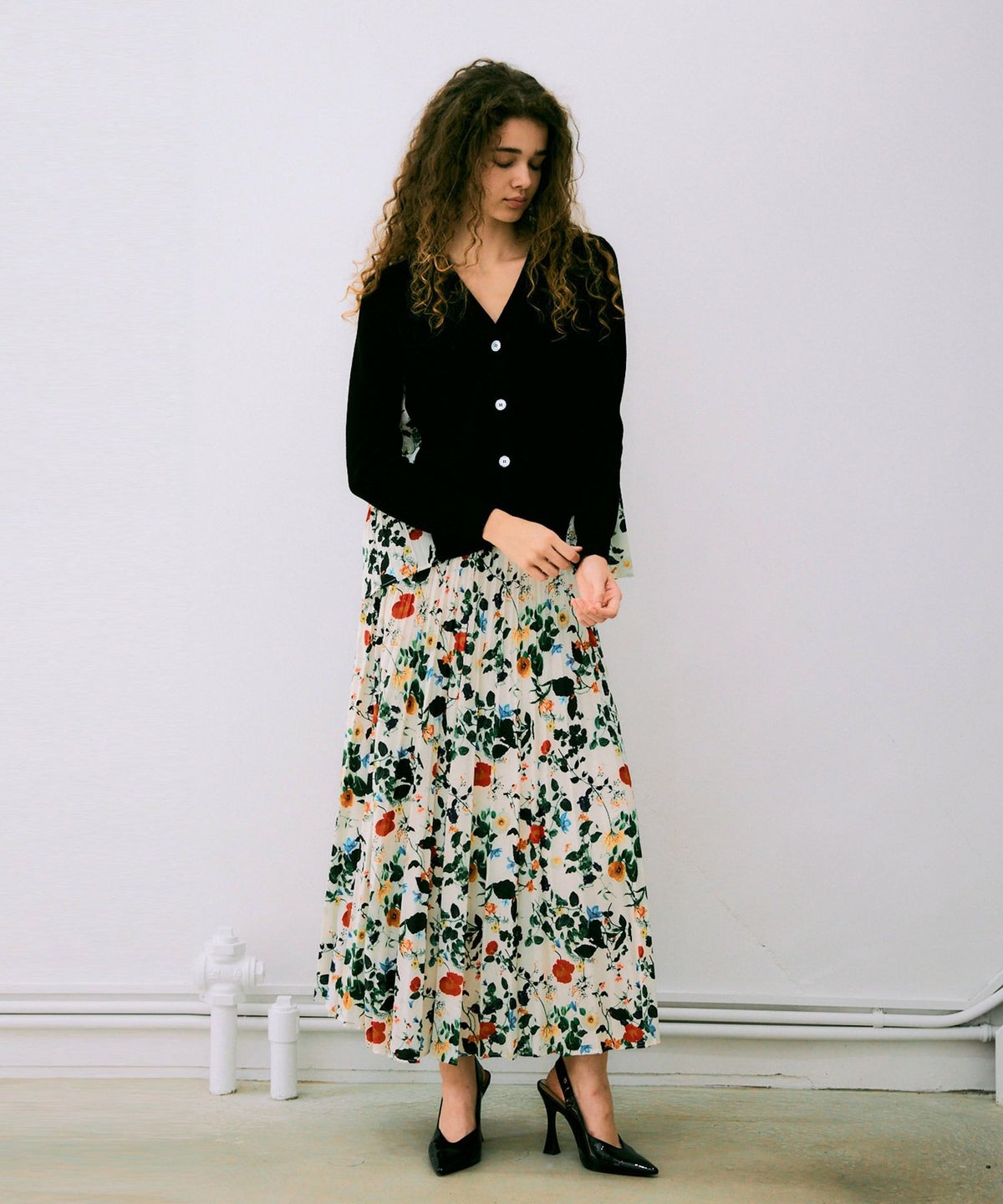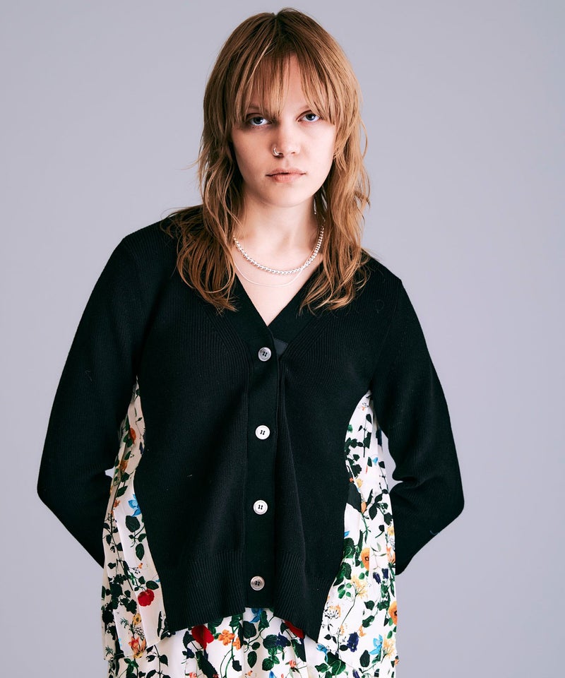 ボタニカル柄切替カーディガン*ブラック×オフホワイト*<NMS1-LN13>