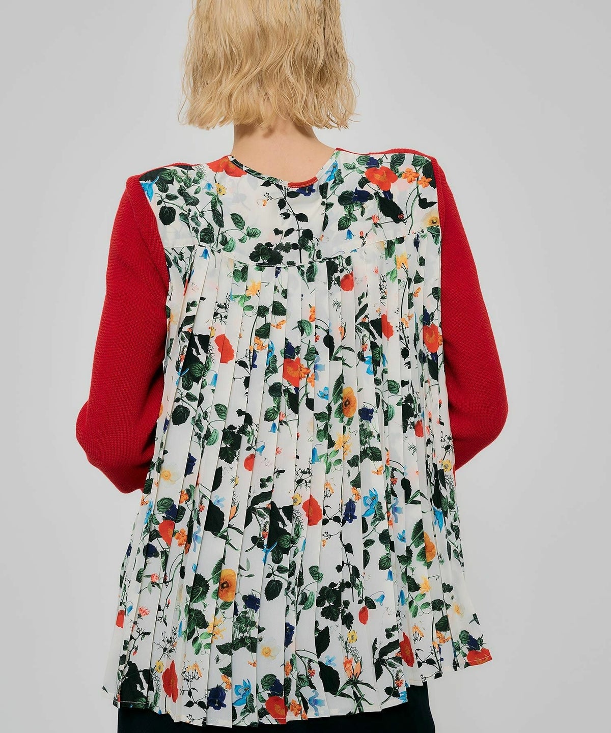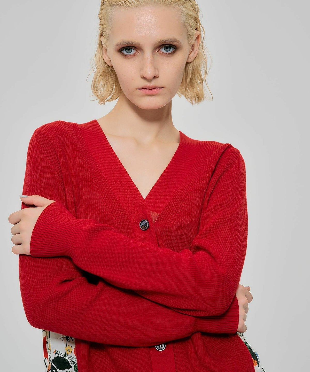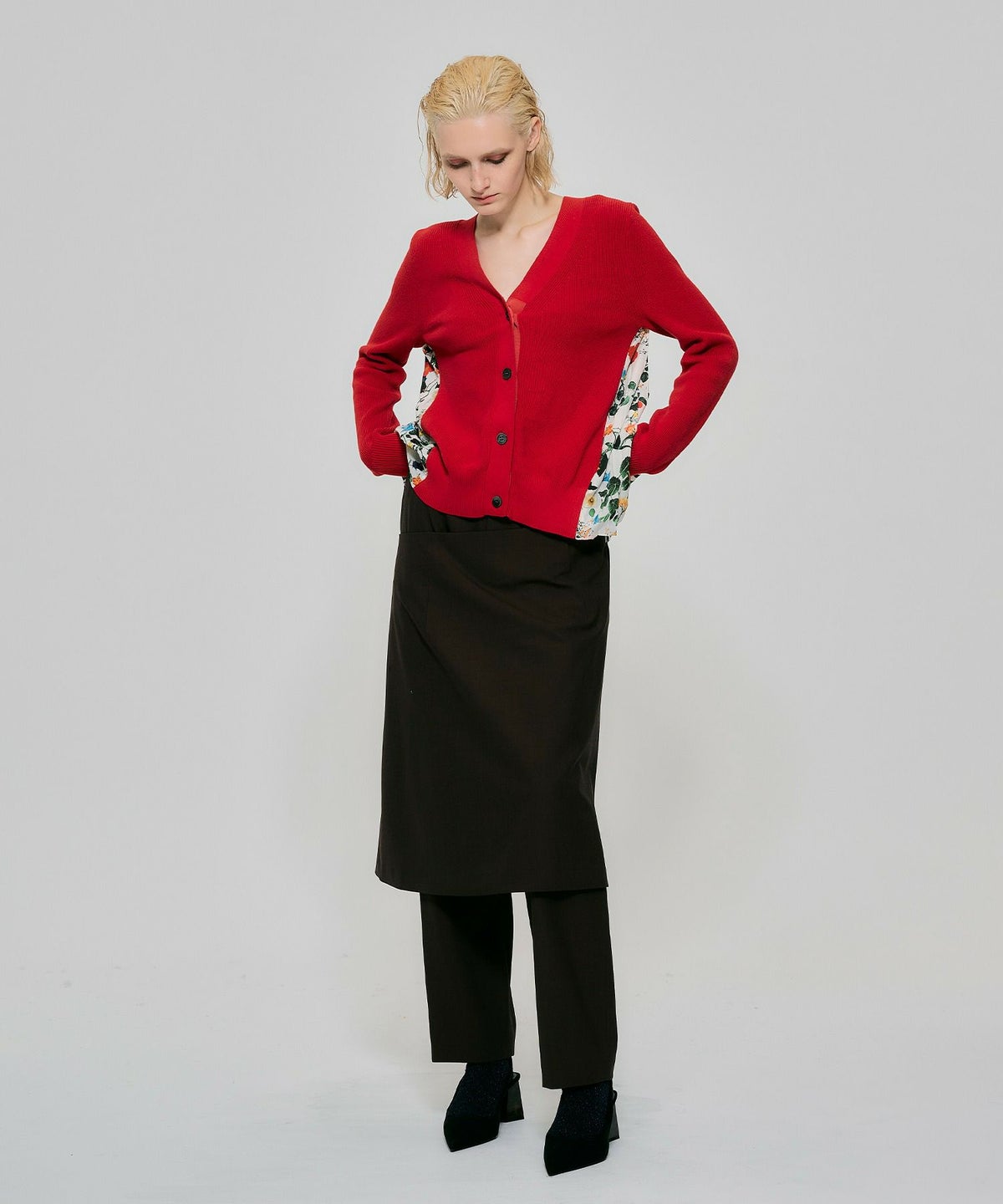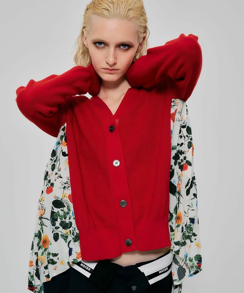 ボタニカル柄切替カーディガン*レッド*<NMS1-LN13>