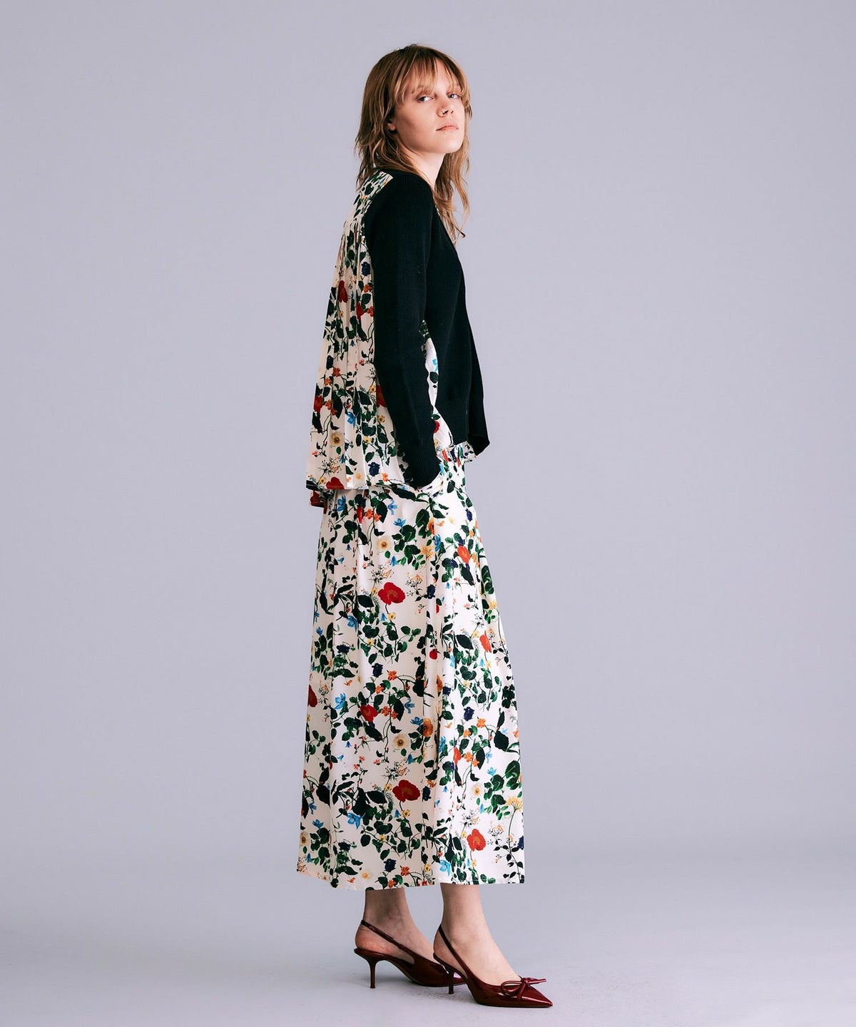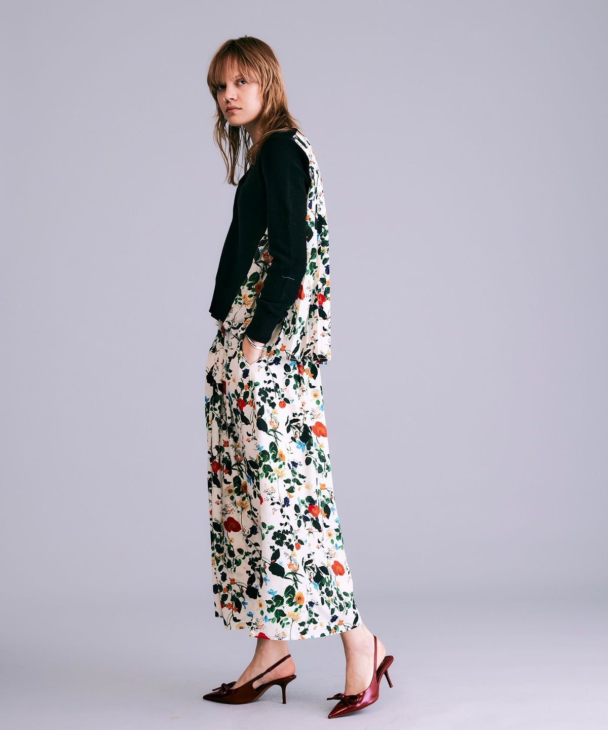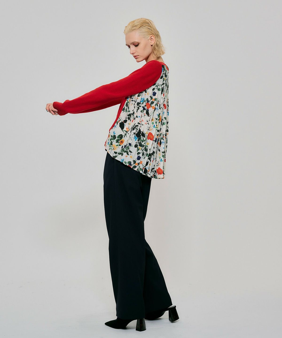 ボタニカル柄切替カーディガン*レッド*<NMS1-LN13>