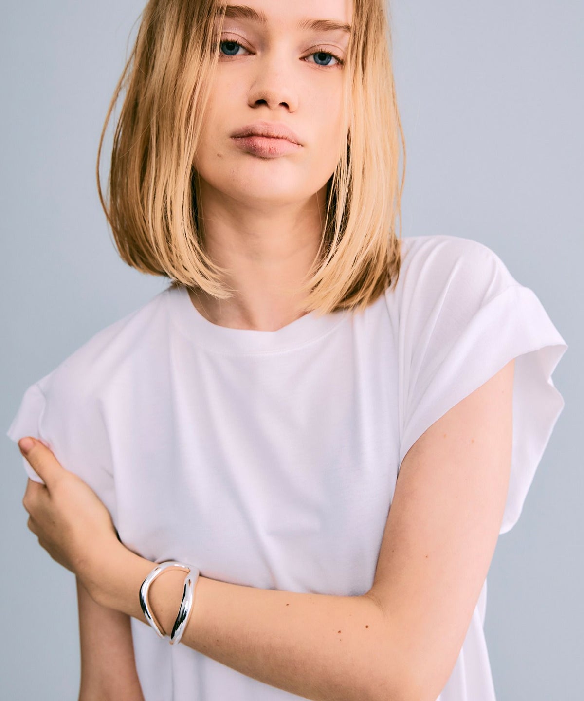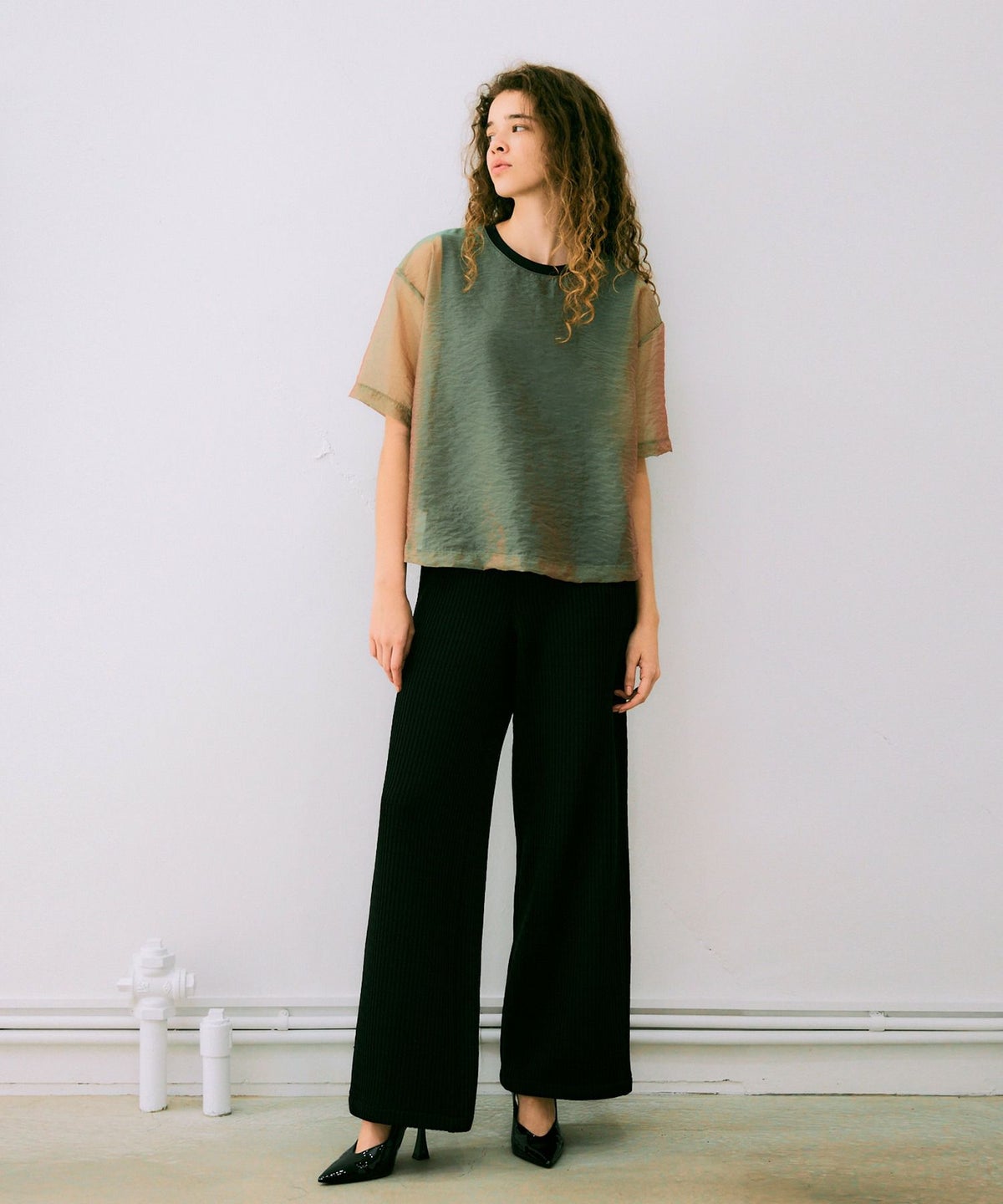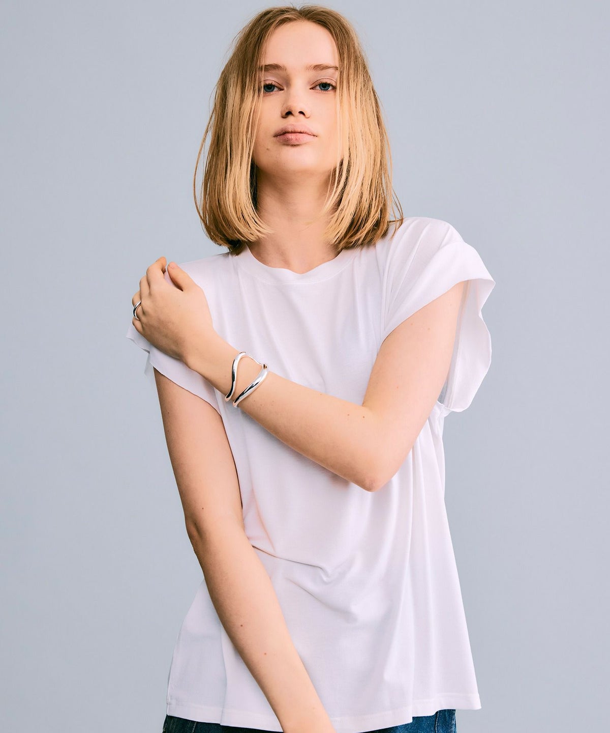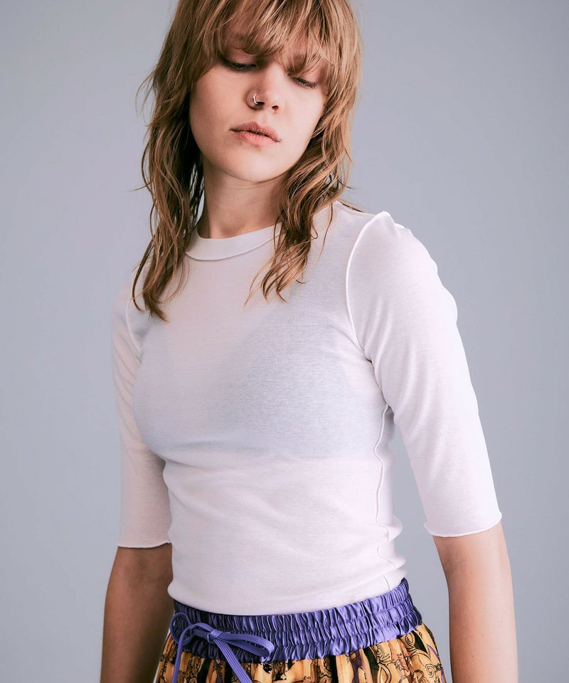 シアーハーフスリーブカットソー*ホワイト*<NMS1-LT58>