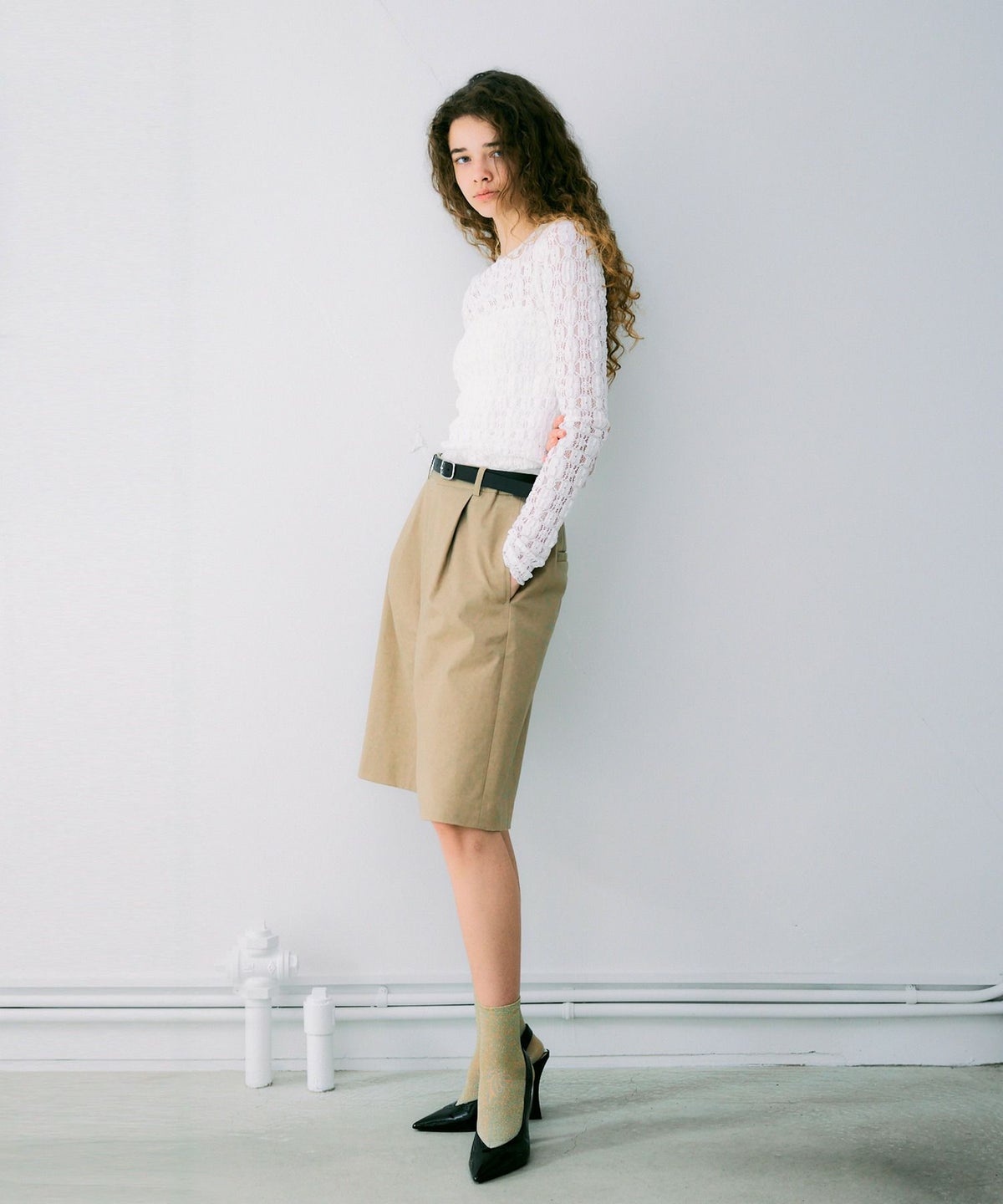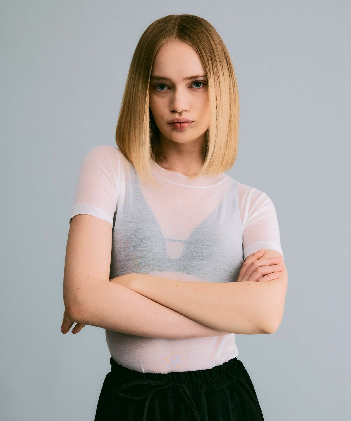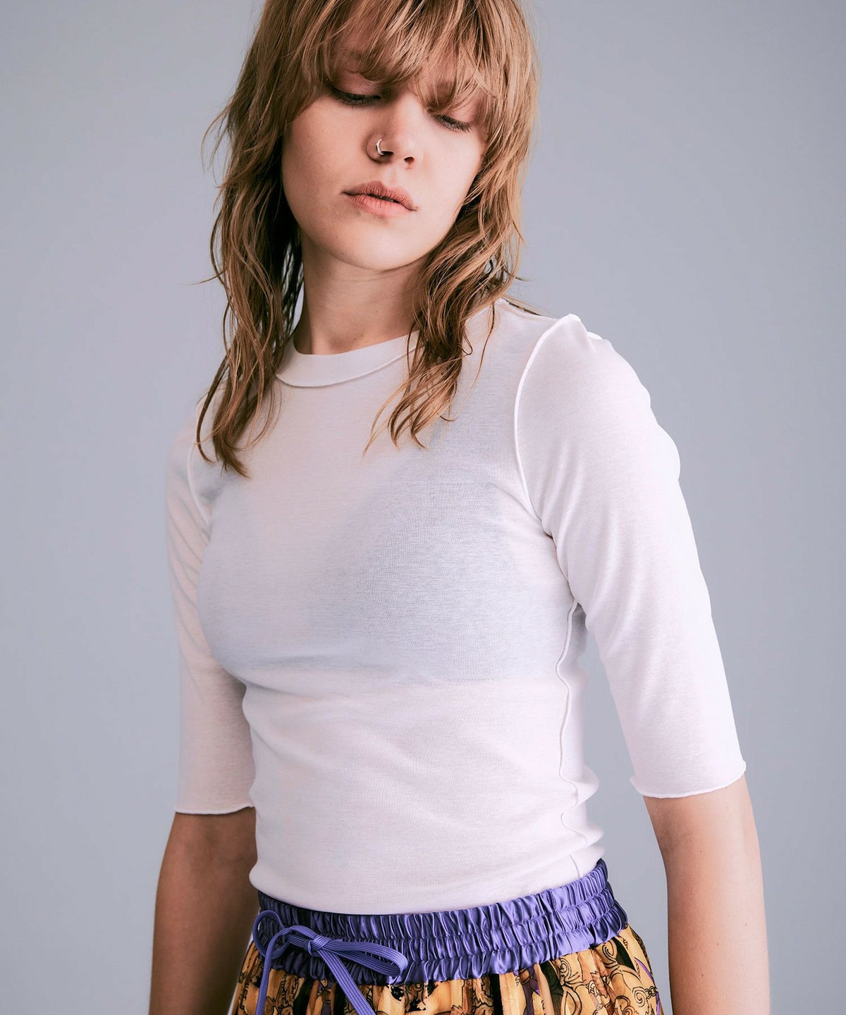 シアーハーフスリーブカットソー*ホワイト*<NMS1-LT58>