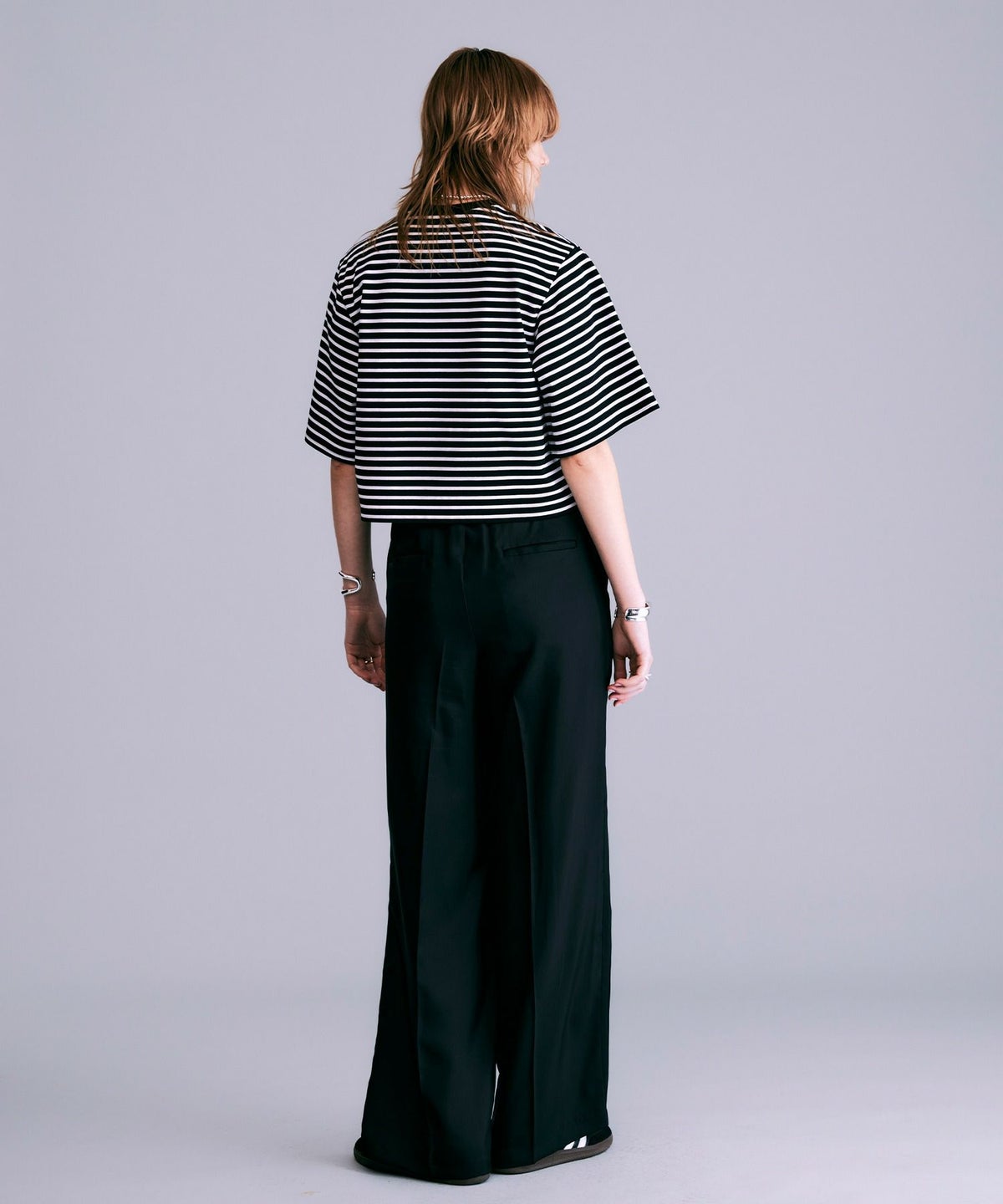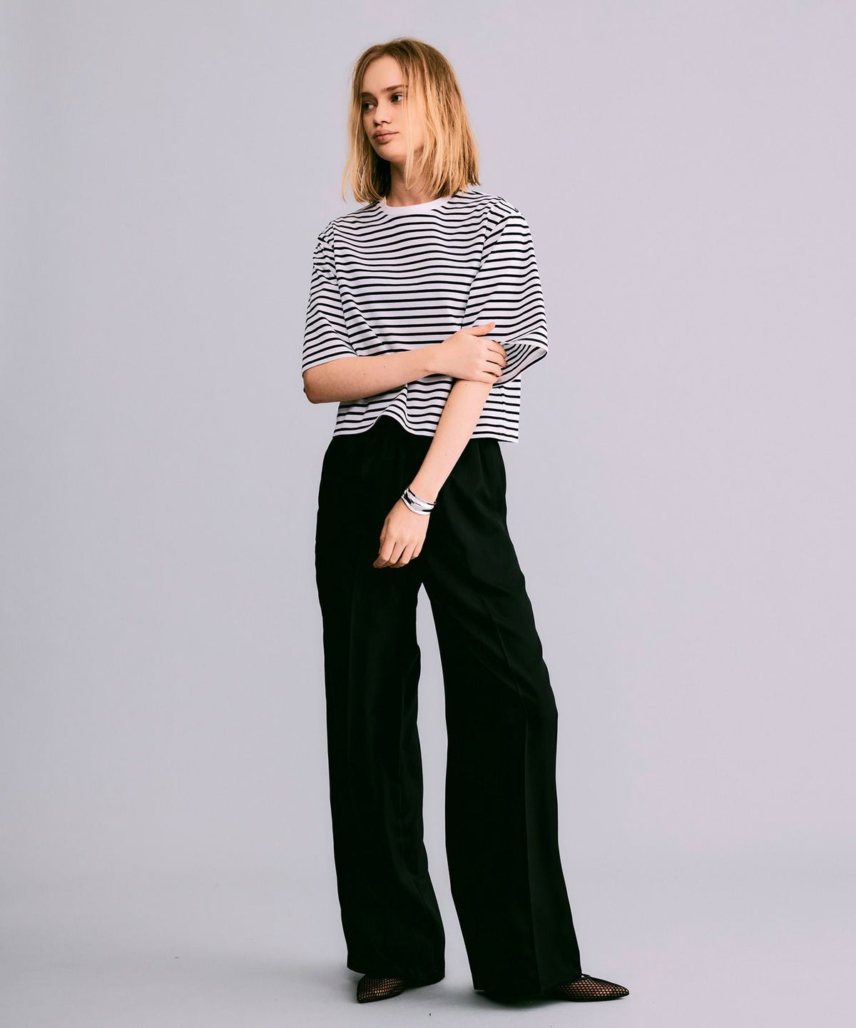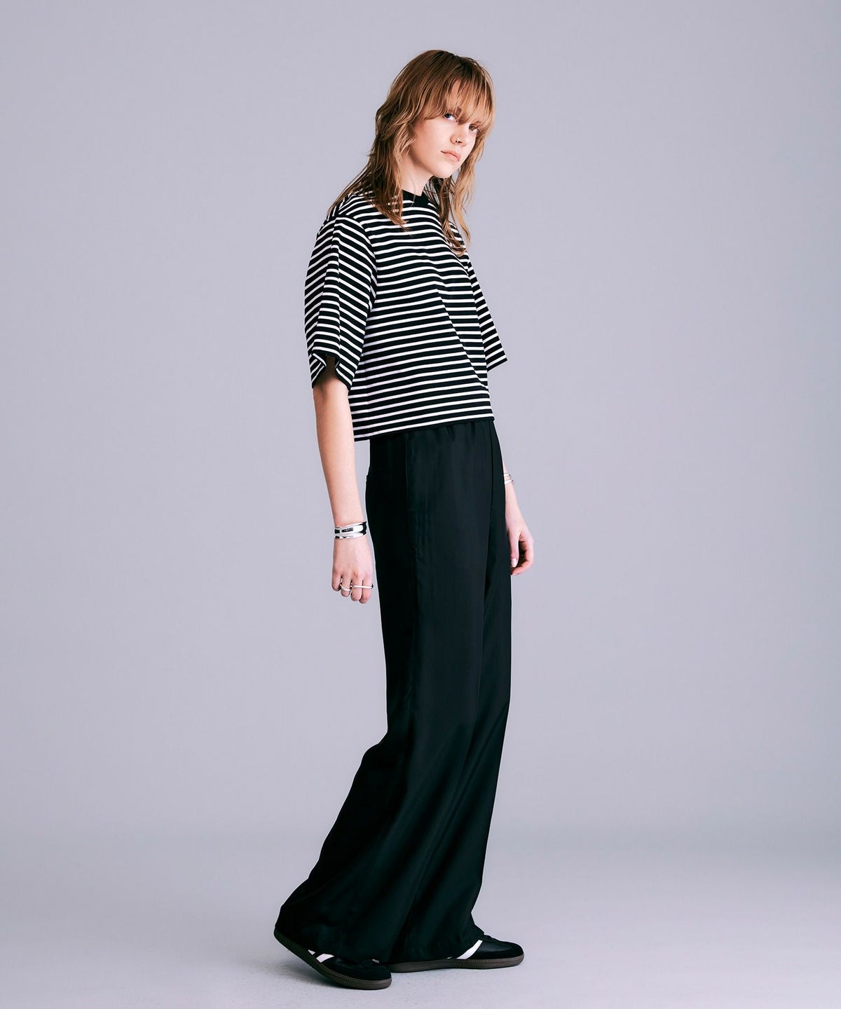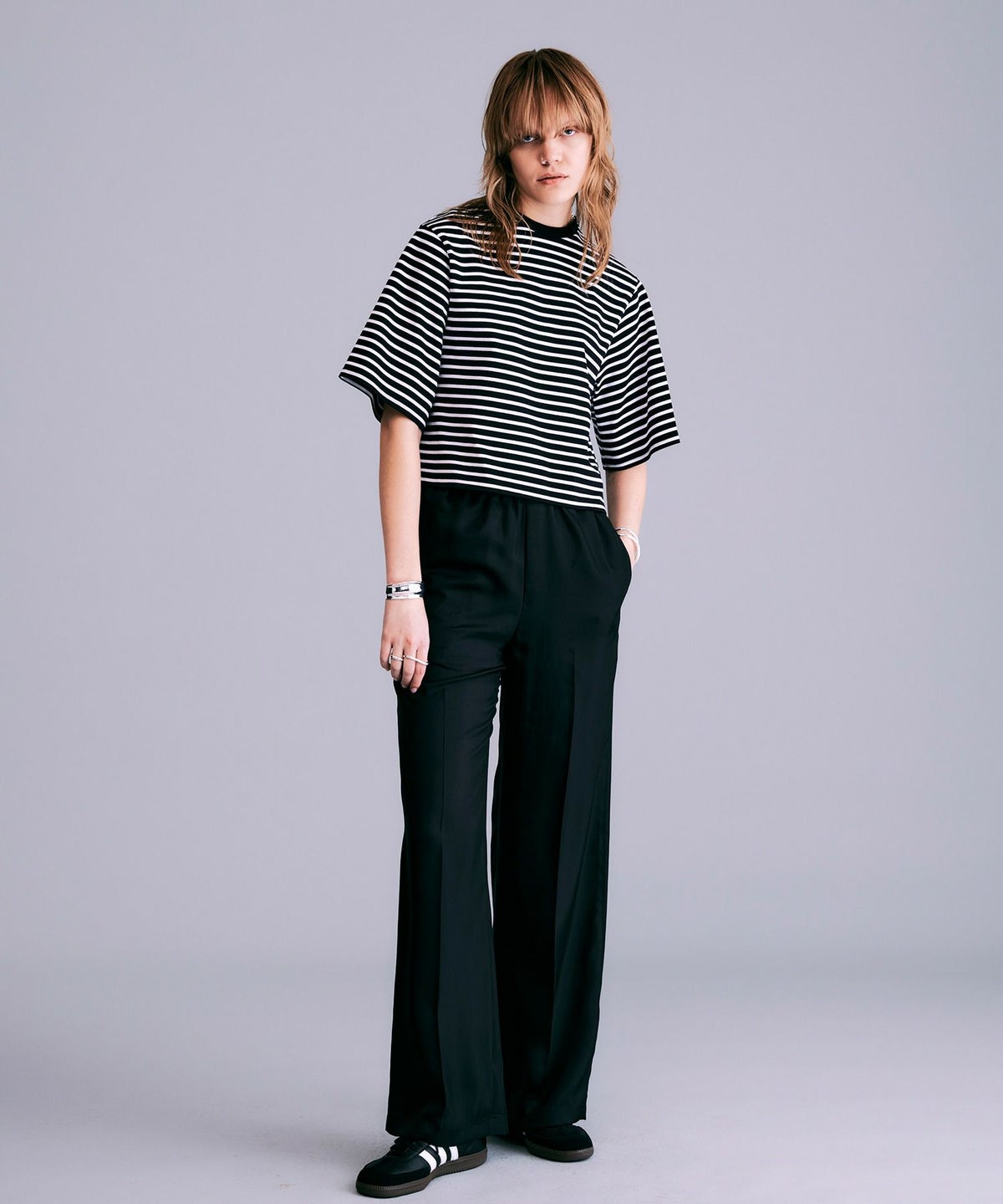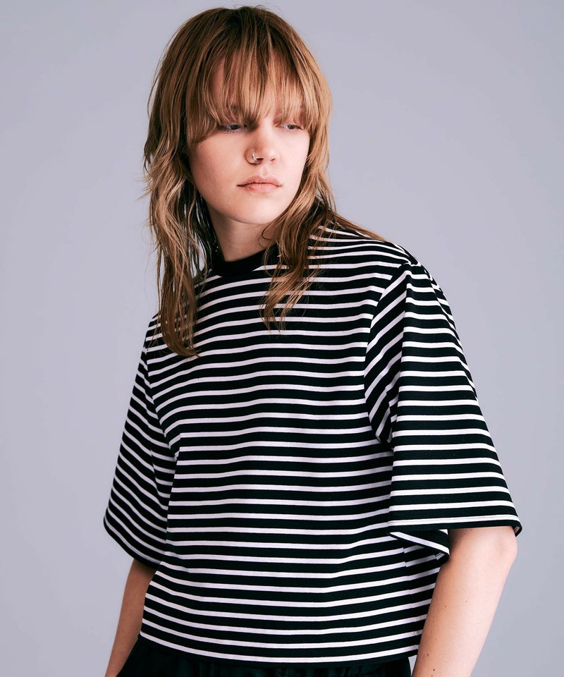 ボックスシルエットボーダーTシャツ*ブラック×ホワイト*<NMS1-LT60>