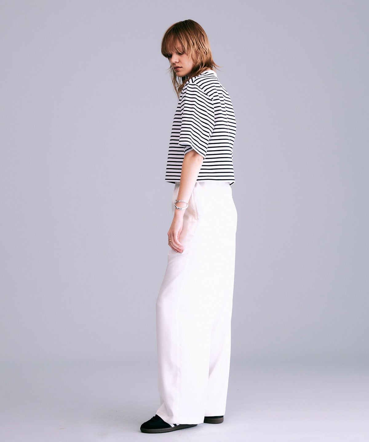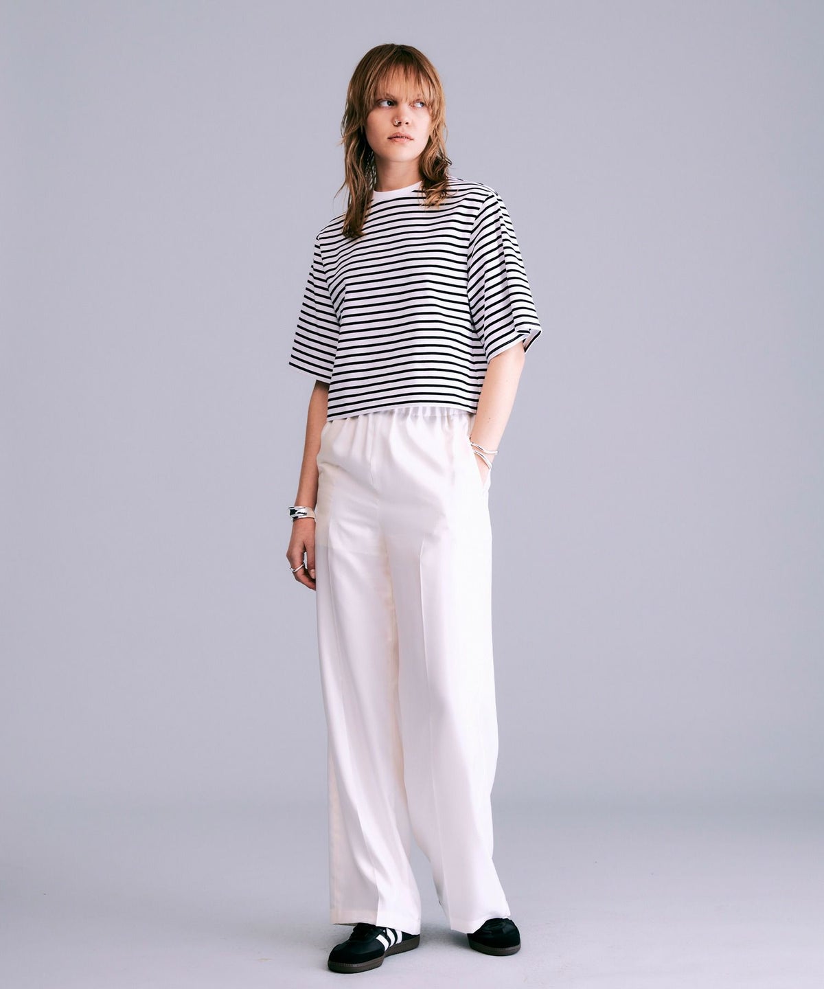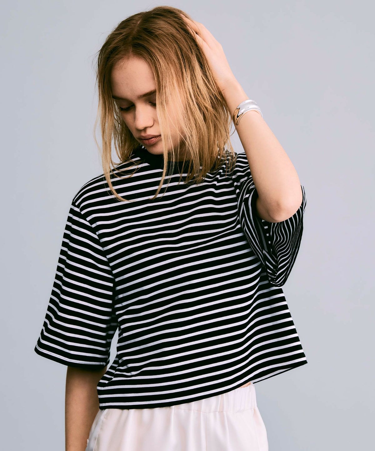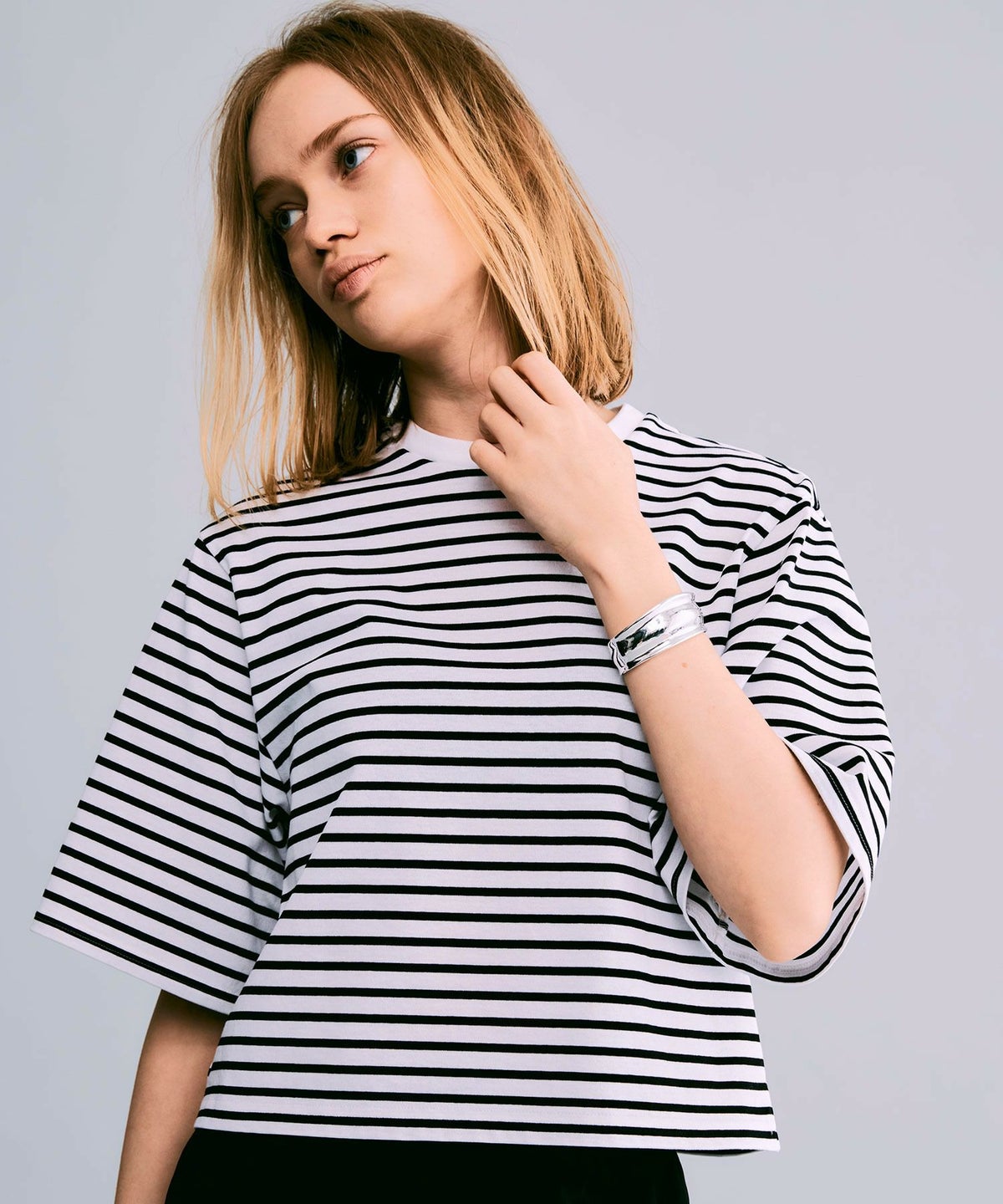 ボックスシルエットボーダーTシャツ*ホワイト×ブラック*<NMS1-LT60>