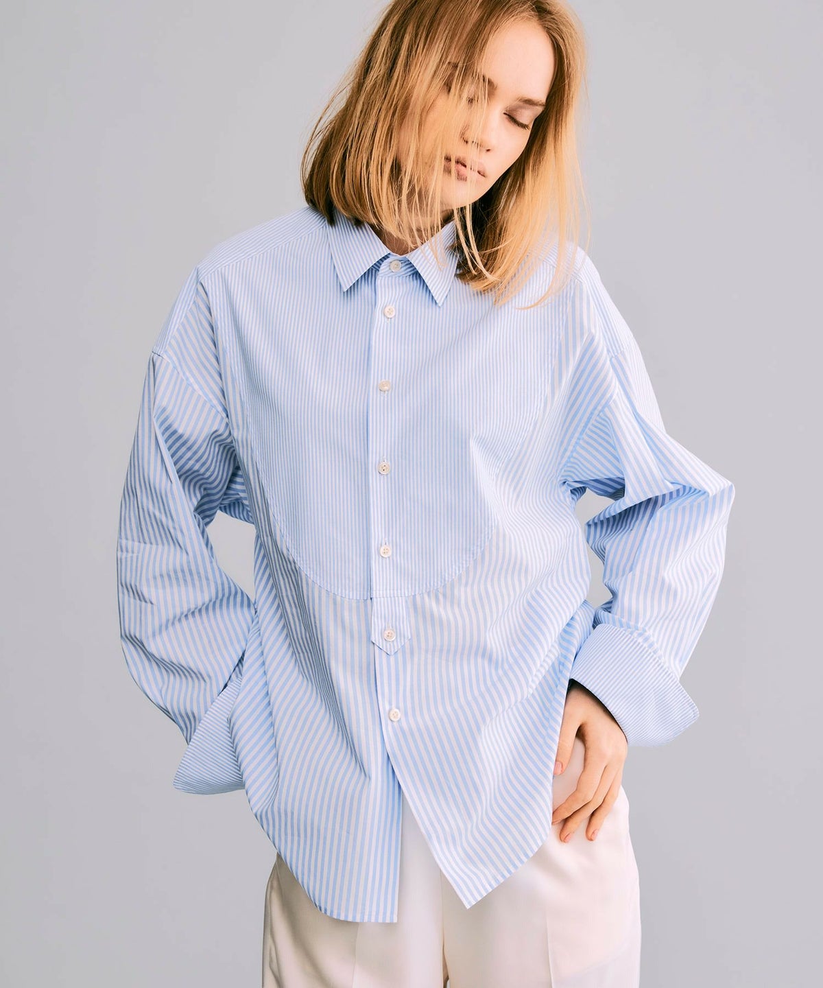 イカ胸ストライプシャツ*ブルーストライプ*<NMS1-LBL18>