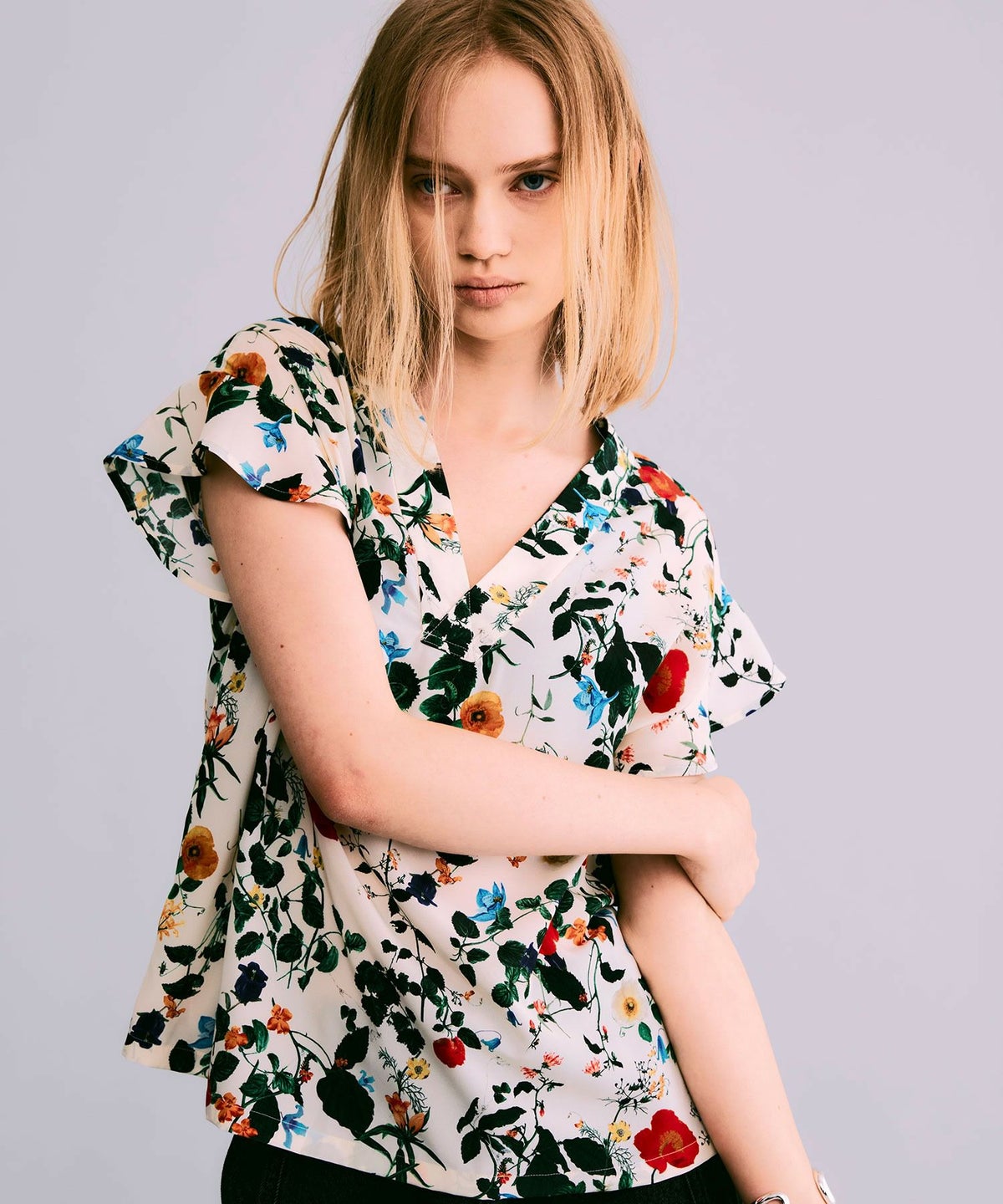 2WAYボタニカル柄フレンチスリーブプルオーバー*オフホワイト*<NMS2-LBL22>