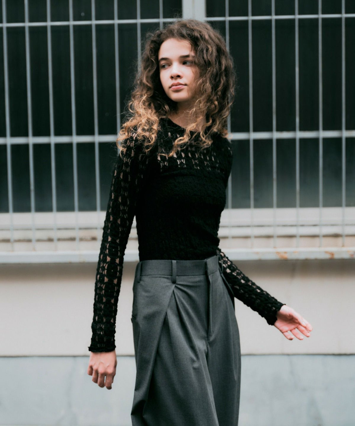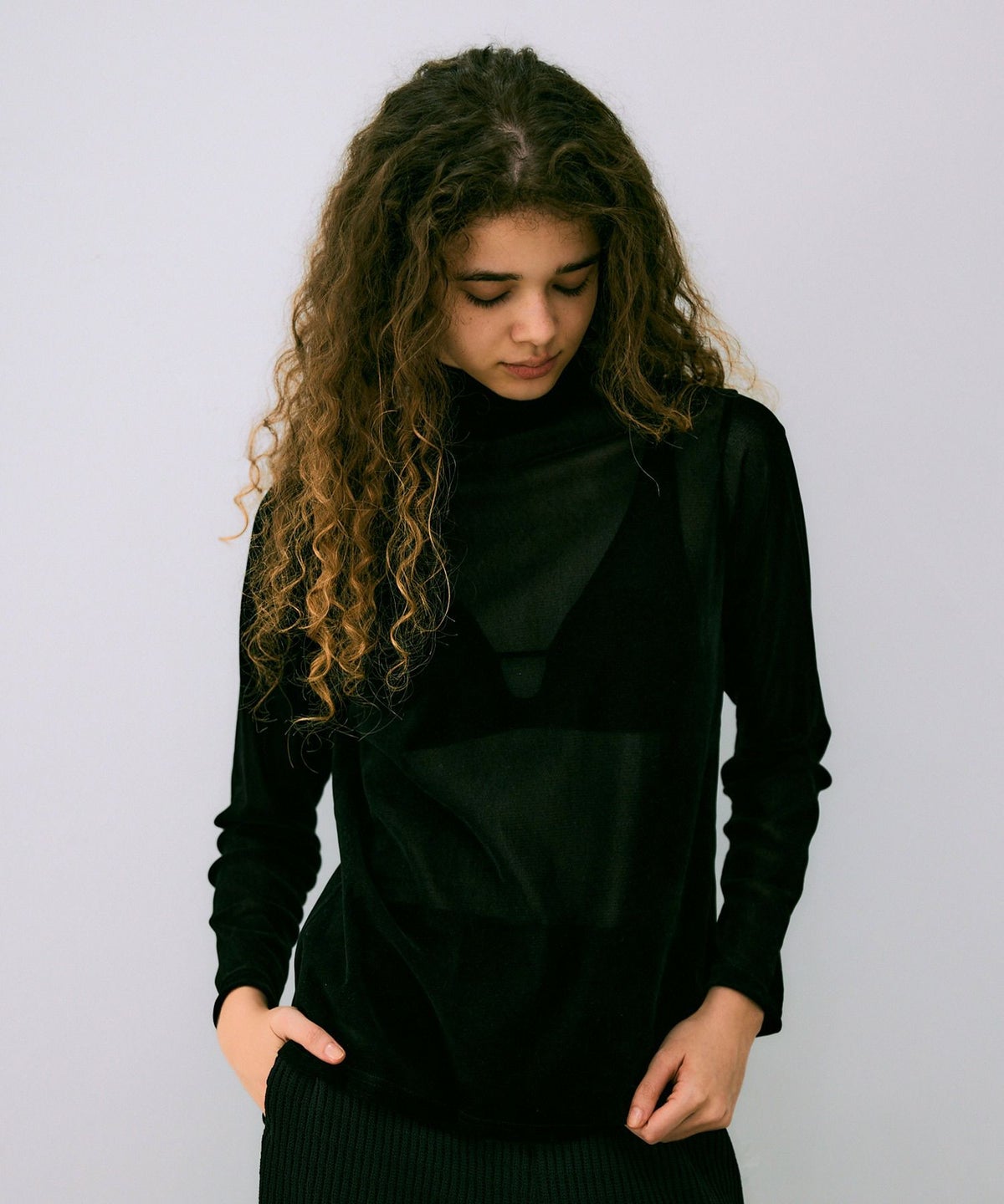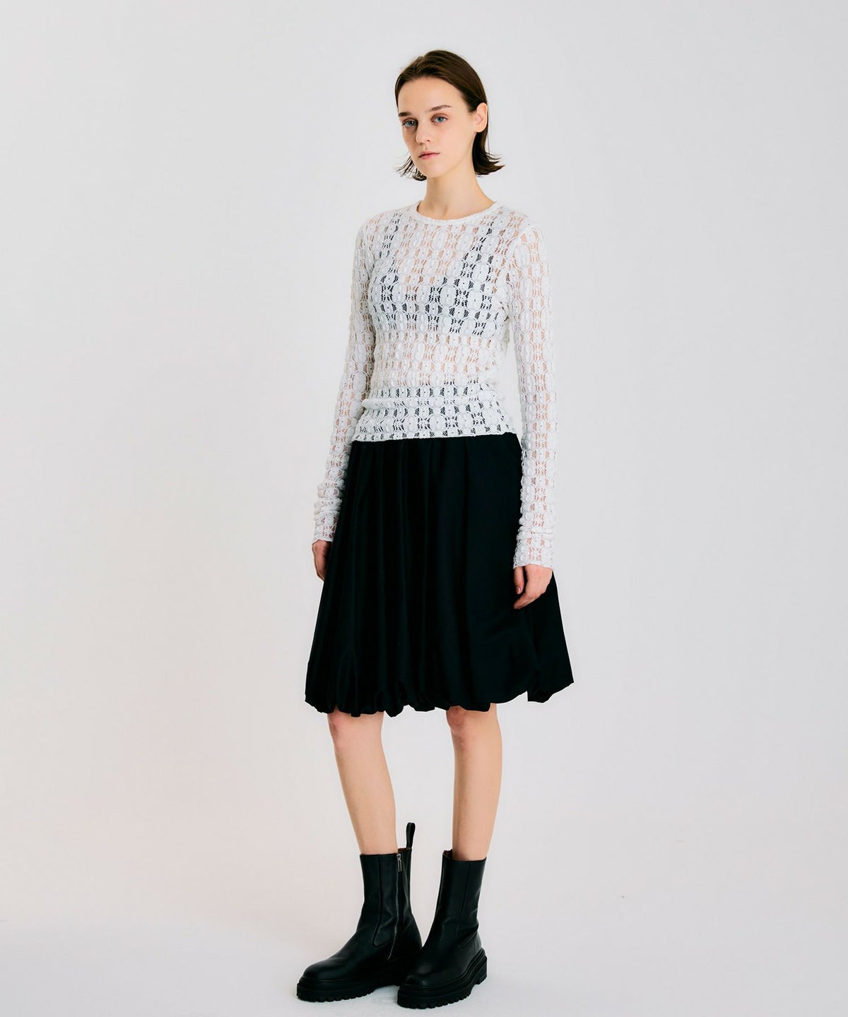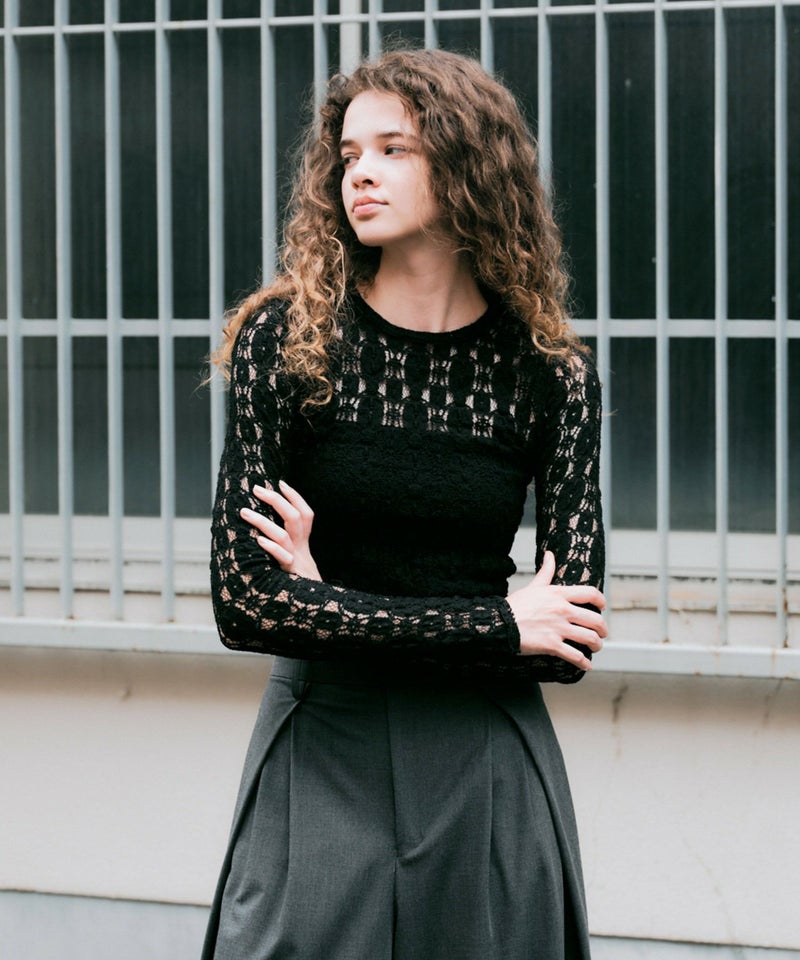 ラッセルレースロングスリーブプルオーバー*ブラック*<NMA3-LT66>