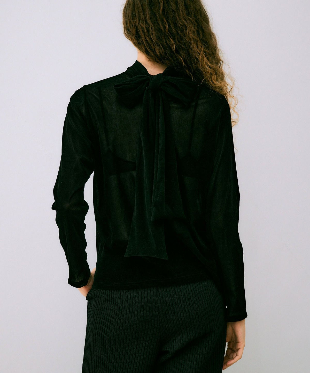 ベルベットフロッキーボウタイカットソー*ブラック*<NMA3-LT70>