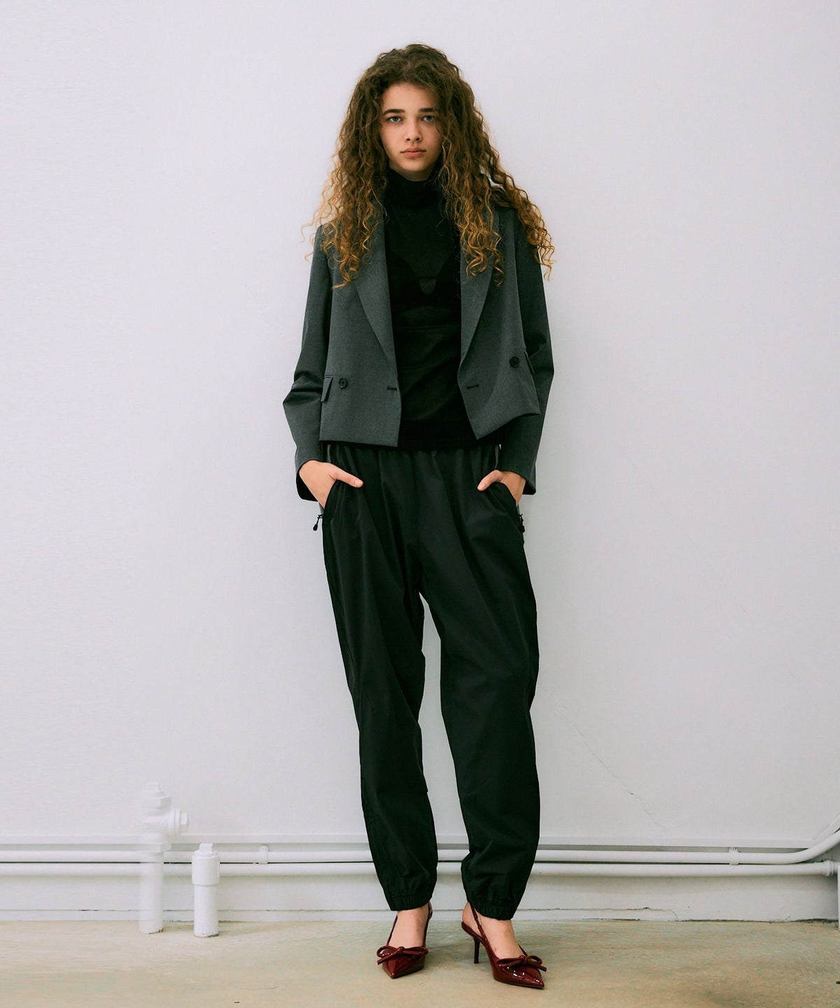 ベロアクロップドジップパーカー*ブラック*<NMA3-LT73>