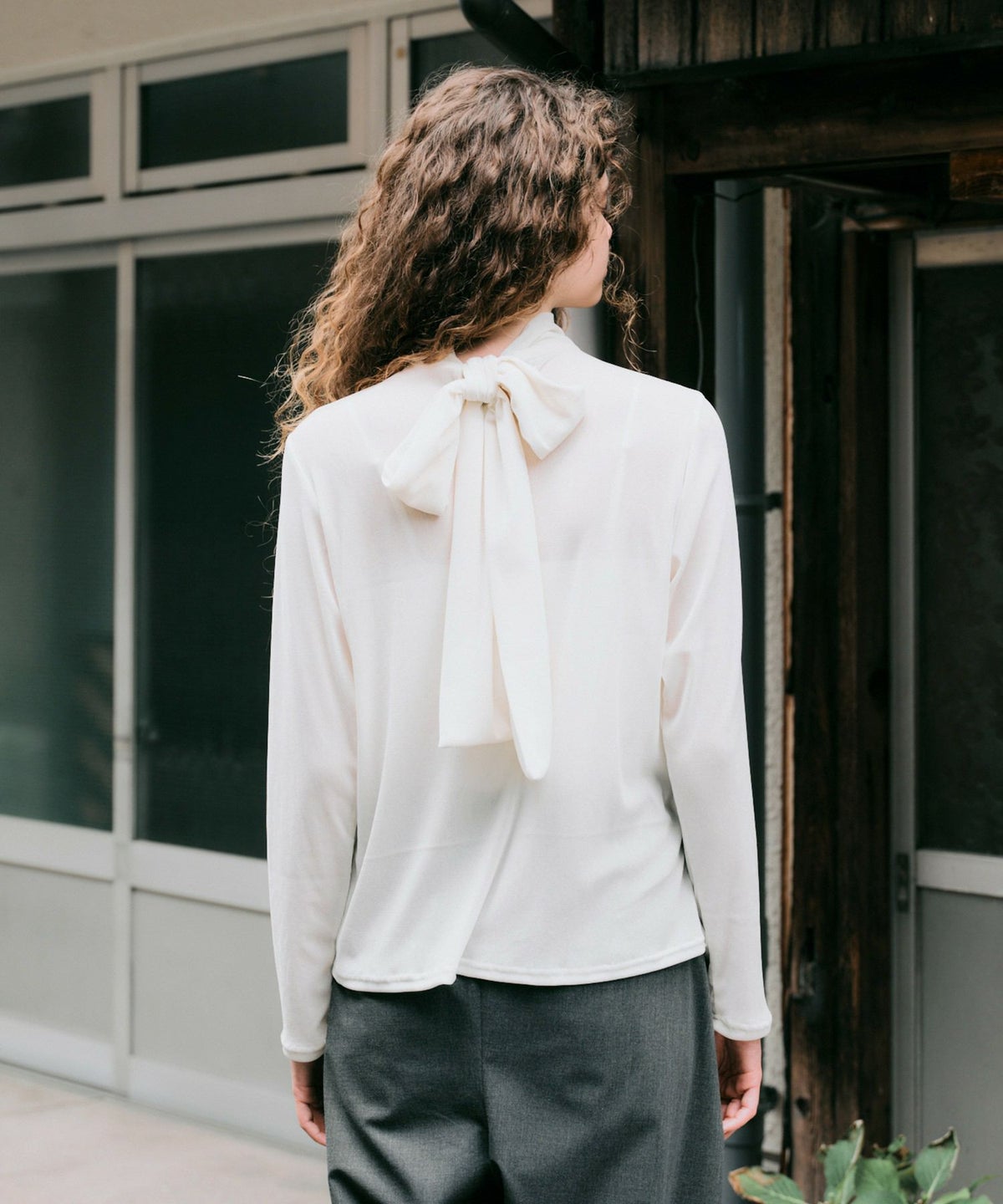 ベルベットフロッキーボウタイカットソー*ホワイト*<NMA3-LT70>